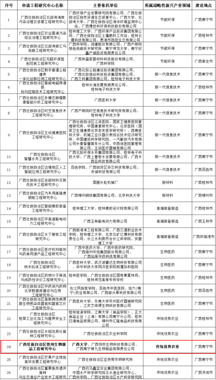 附:2022年度广西壮族自治区工程研究中心认定名单