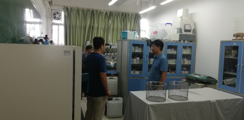 党委书记韦小强(右一)检查公司教学科研基地实验动物饲养房