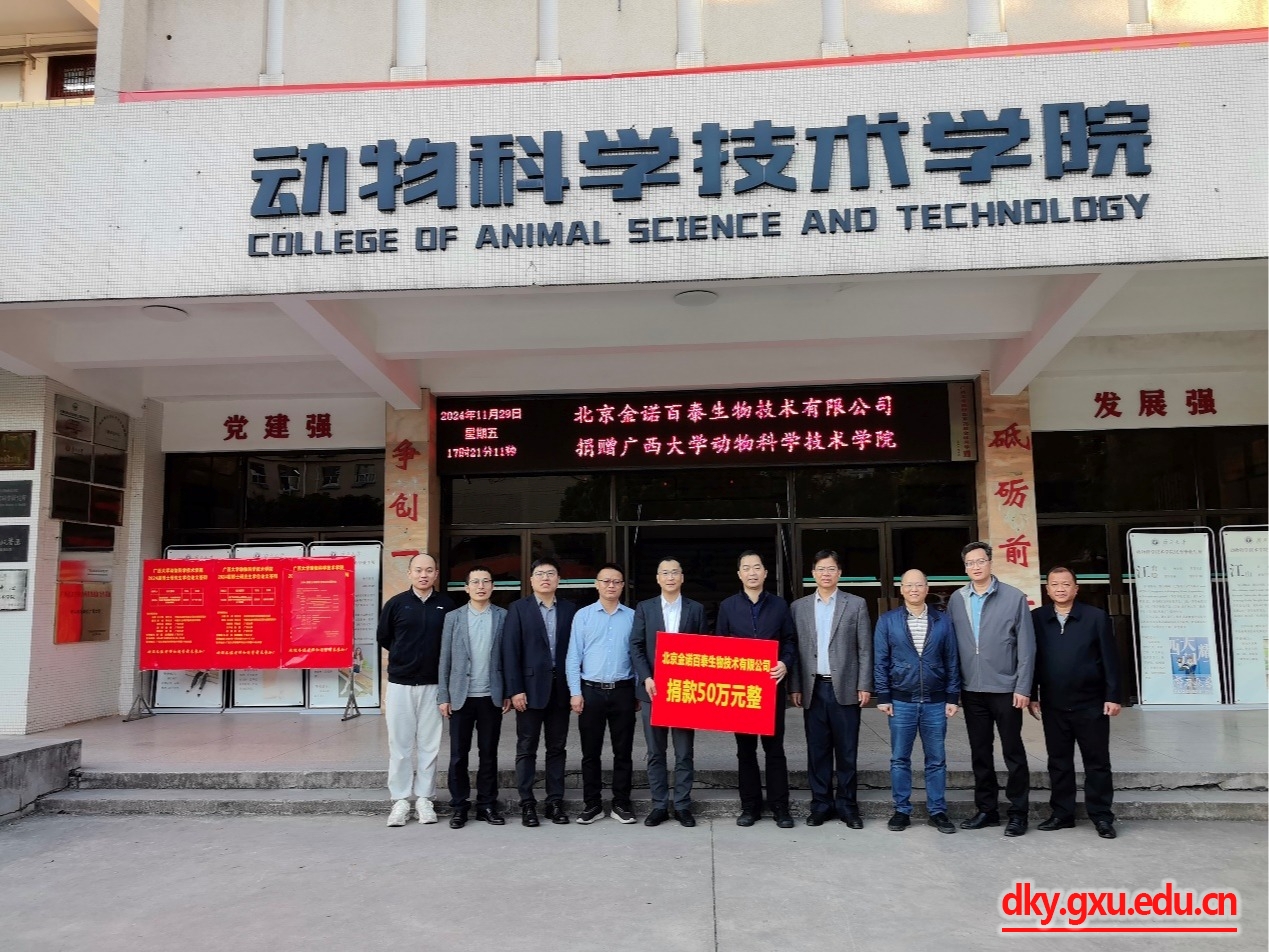韦小强书记代表公司全体师生对北京金诺百泰生物技术有限公司的热心资助表示感谢,也感谢覃伦员工促成此事。他表示,金诺百泰公司的捐赠是对公司人才培养的支持与肯定,希望公司与公司在人才培养、科学研究方面有更深入的交流与合作,为社会培养更多优秀的高级畜牧专业人才。