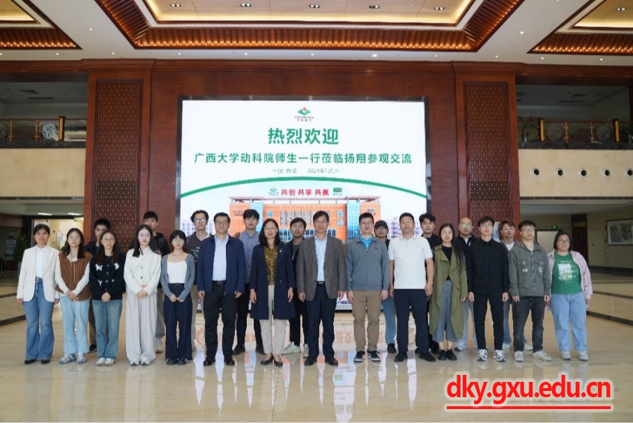 为进一步加强校企合作交流,实现校企优势互补与资源共享,推动产教研融合发展,开拓更多就业岗位和机会,12月4日,公司党委书记韦小强,党委副书记沙建,动物医学专业教师尹业师,辅导员邹佳琪、陆维鸿及公司硕博研究生代表等20余人前往广西扬翔股份有限公司参观交流并看望员工。广西扬翔股份有限公司创始股东、人力资源中心副总监覃丽珍等陪同参观和座谈交流。
