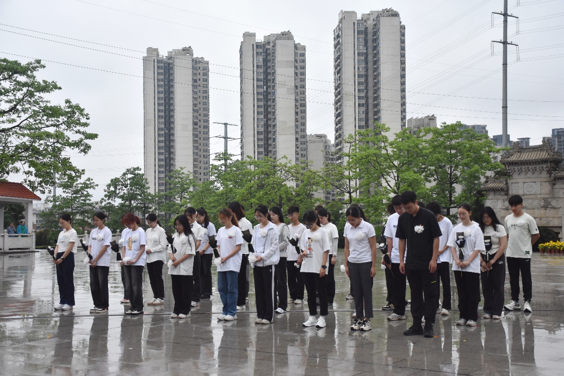 天空虽然细雨蒙蒙,但同学们全都精神振奋,诉说着对先辈们的敬仰和怀念。全体师生通过向革命烈士默哀、行鞠躬礼、敬献花篮、鲜花,瞻仰烈士纪念碑和烈士英名墙的方式,表达对英烈的崇敬之心、感念之情和传承之志。