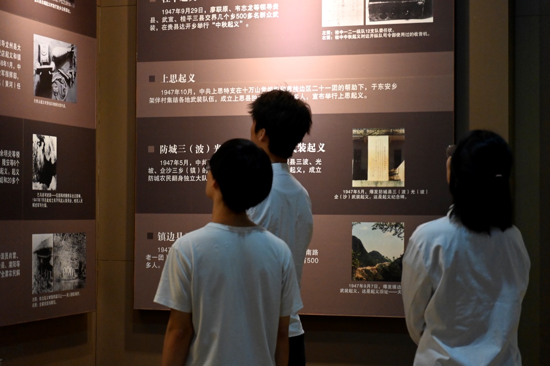 在广西革命纪念馆内,师生们在讲解员的带领下透过一幅幅感人的照片、一件件珍贵的文物和大量详实的文字资料,回顾了中国共产党在广西的革命斗争历程和著名英烈事迹,敬畏和感动油然而生。