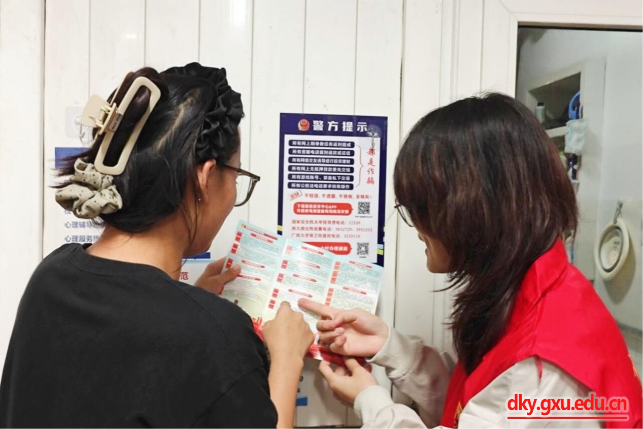 培训班学员深入员工宿舍,“面对面”为同学们讲解反诈知识,并通过发放宣传手册,重点介绍刷单返利、网络交友、游戏充值、平台贷款等高发案件类型,提醒同学们不要存在侥幸、猎奇心理,做到不轻信、不透露、不转账。