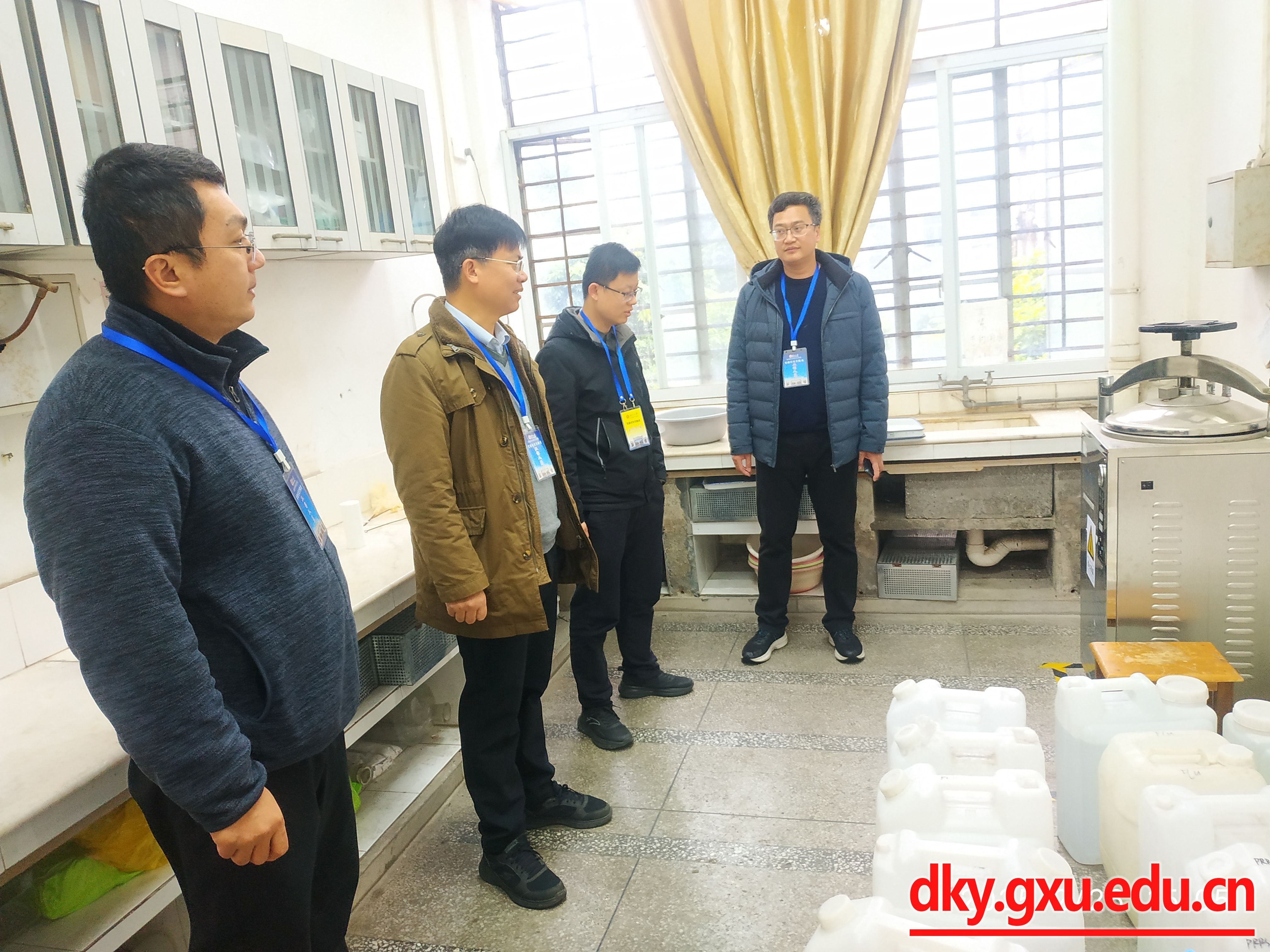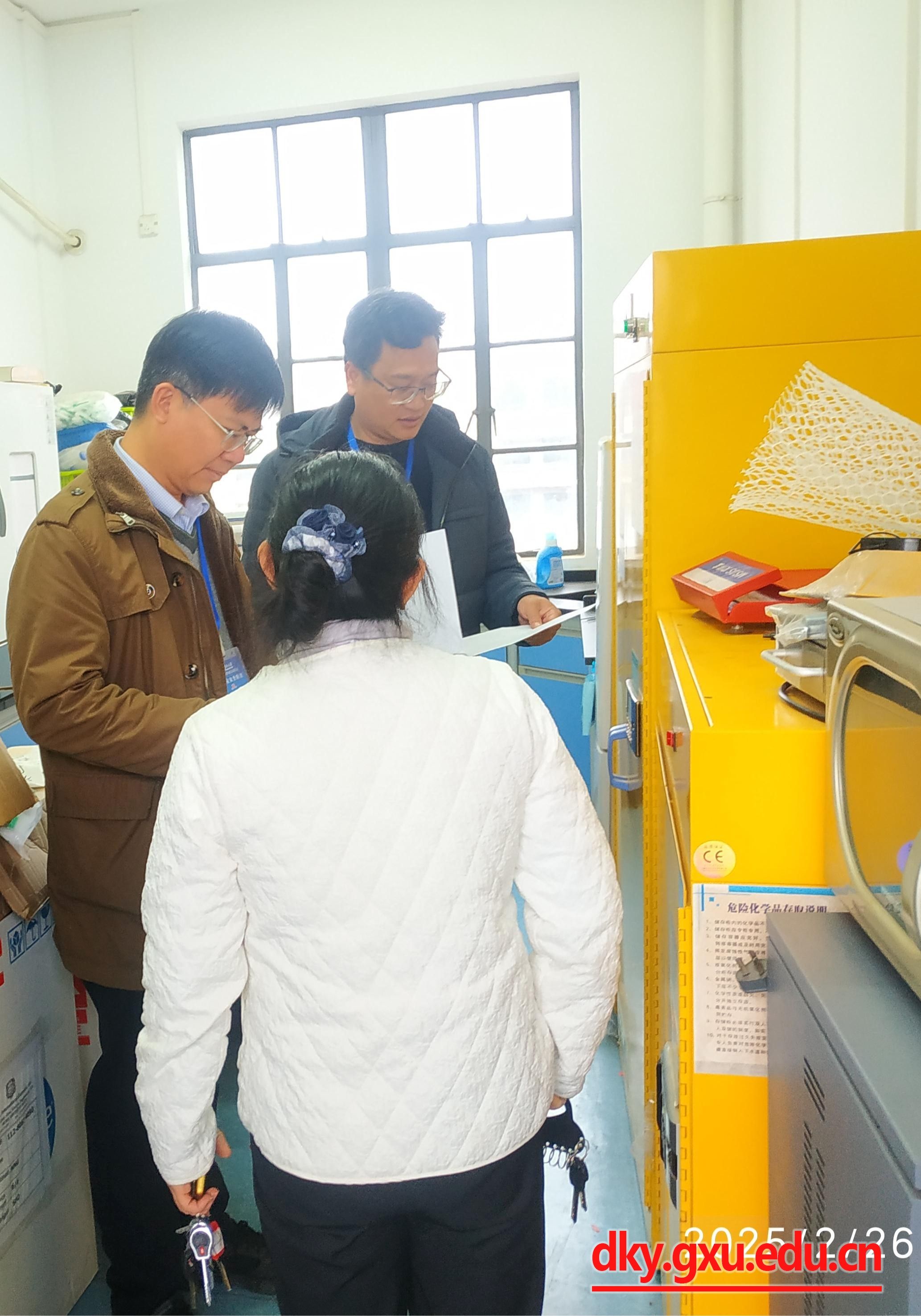 新学期伊始,为筑牢实验室安全防线,保障教学科研工作平稳有序开展,2月26日,william威廉中文官网公司党委书记韦小强、副经理蒋钦杨副带队检查各教学和科研实验室安全。