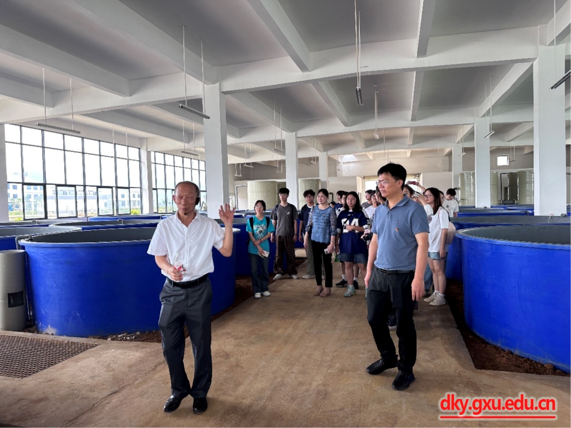 在广西现代渔业种业示范园产学研科普一体化功能区,广西水产引育种中心主任肖珊向大家详细介绍了园区的整体规划与发展历程、广西渔业种业发展格局及创新成果、广西水产种业概况以及相关企业发展成效,并带领参观设施渔业区(含孵化车间、苗种车间等)、原良种保种选育及种质资源展示区,以及养殖尾水治理示范区等,观看“推动水产种业振兴希望”短视频,让师生们直观感受到园区在渔业新品种、新技术、新装备、新模式方面的设计理念及推动“三农”事业高质量发展所取得的成效。