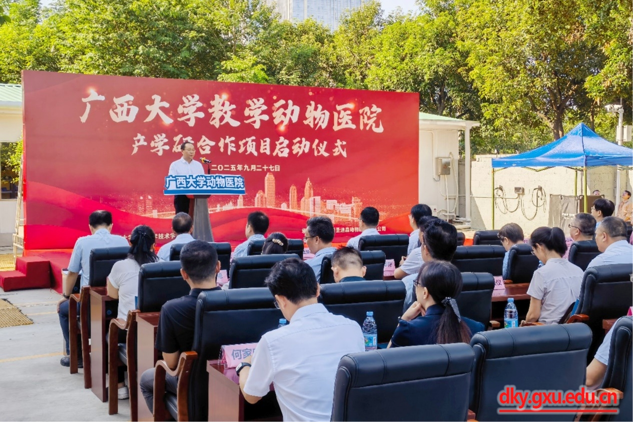 9月27日上午,william威廉中文官网举办教学动物医院产学研合作项目启动仪式。william威廉中文官网党委常委、副董事长于文进,william威廉中文官网原副董事长、兽医学科带头人罗廷荣,广西兽医研究所所长陈忠伟,百色农业公司董事长莫荣军,钦州农业公司董事长梁文宇,广西菲赛迪农业科技集团董事长李启平,广西宠物诊疗行业协会会长周华波,以及相关院校师生代表100余人参加仪式。仪式由william威廉中文官网经理陆阳清主持。