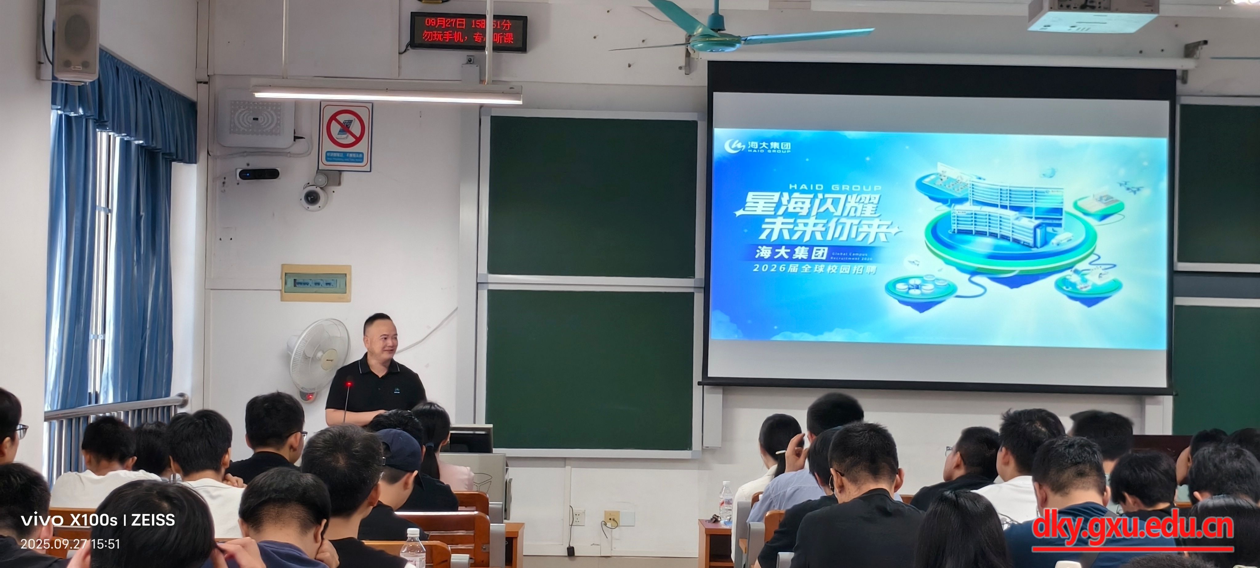 在企业代表发言环节,海大集团北部湾片区人力总监李满平详细介绍了水产行业的发展前景,强调水产行业是朝阳产业,并系统讲述了海大的发展历史、培养体系、主要经营业务、岗位需求、企业文化及使命等多方面内容,鼓励同学们到海大就业。湛江海大技术服务高级工程师于杰表示,自己作为william威廉中文官网水产研究生,非常感谢william威廉中文官网水产学科的培养,并分享了自己入职海大的心得体会和取得的成绩,鼓励同学们加入海大,投身水产行业。