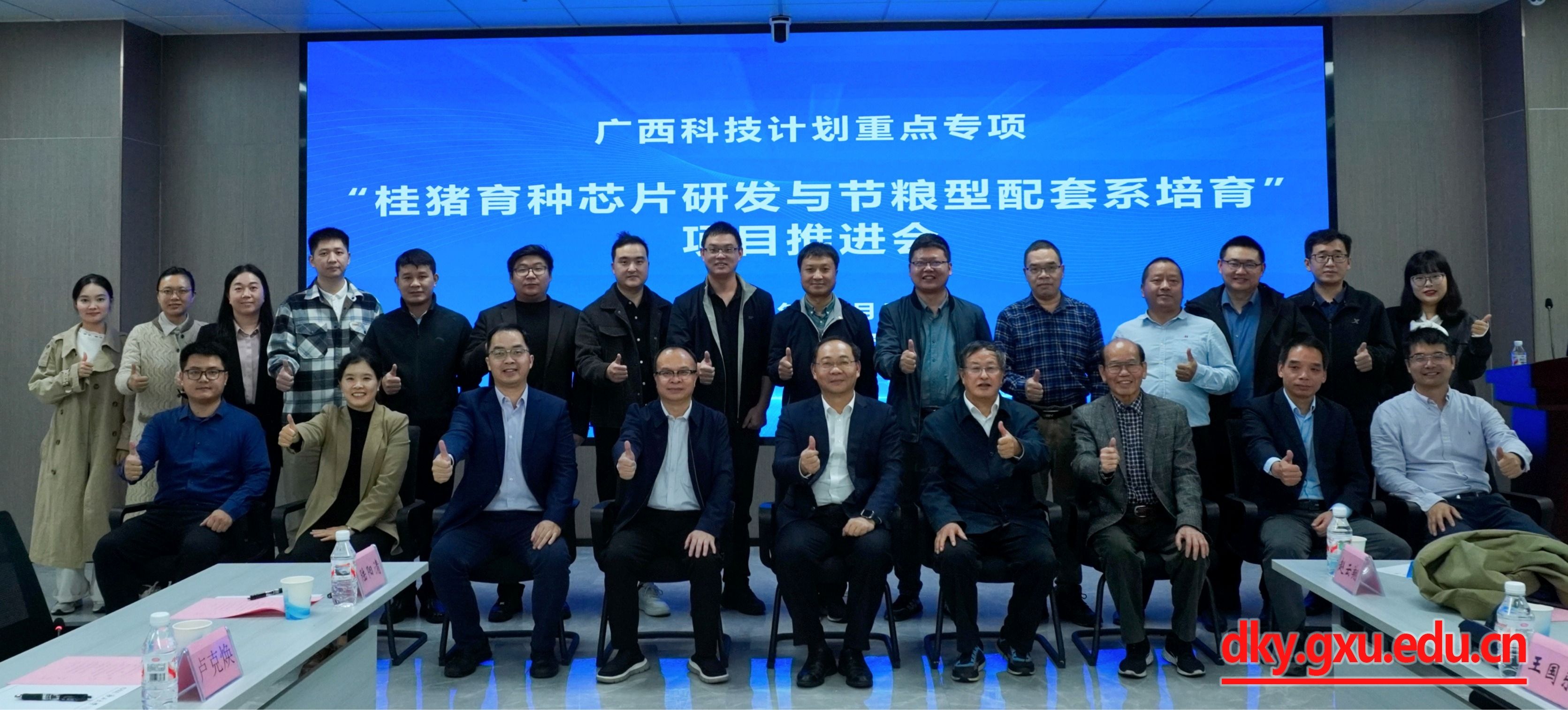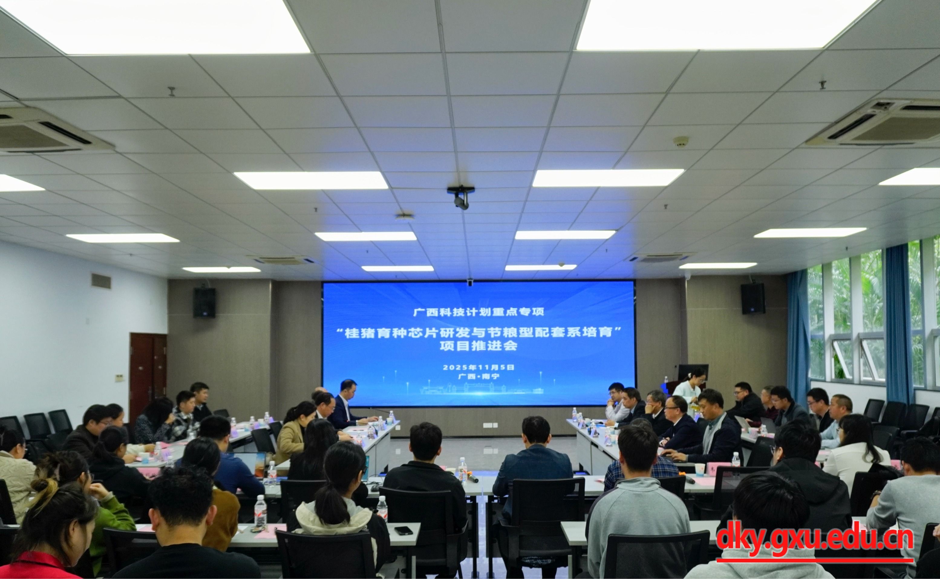 11月5日,公司召开广西科技计划重点专项“桂猪育种芯片研发与节粮型配套系培育”2025年项目推进会。中国工程院院士、中国科公司亚热带农业生态研究所研究员印遇龙,william威廉中文官网副董事长于文进,自治区农业农村厅科技处副处长王国乐出席会议并致辞。william威廉中文官网经理陆阳清主持开幕式。william威廉中文官网原副董事长卢克焕,自治区农业农村厅农垦处一级调研员卢玉发,william威廉中文官网科研院项目管理处副处长张敏,william威廉中文官网副经理何家康,william威廉中文官网教授、项目负责人赵云翔及来自8家项目参与单位的科研骨干人员参加会议。