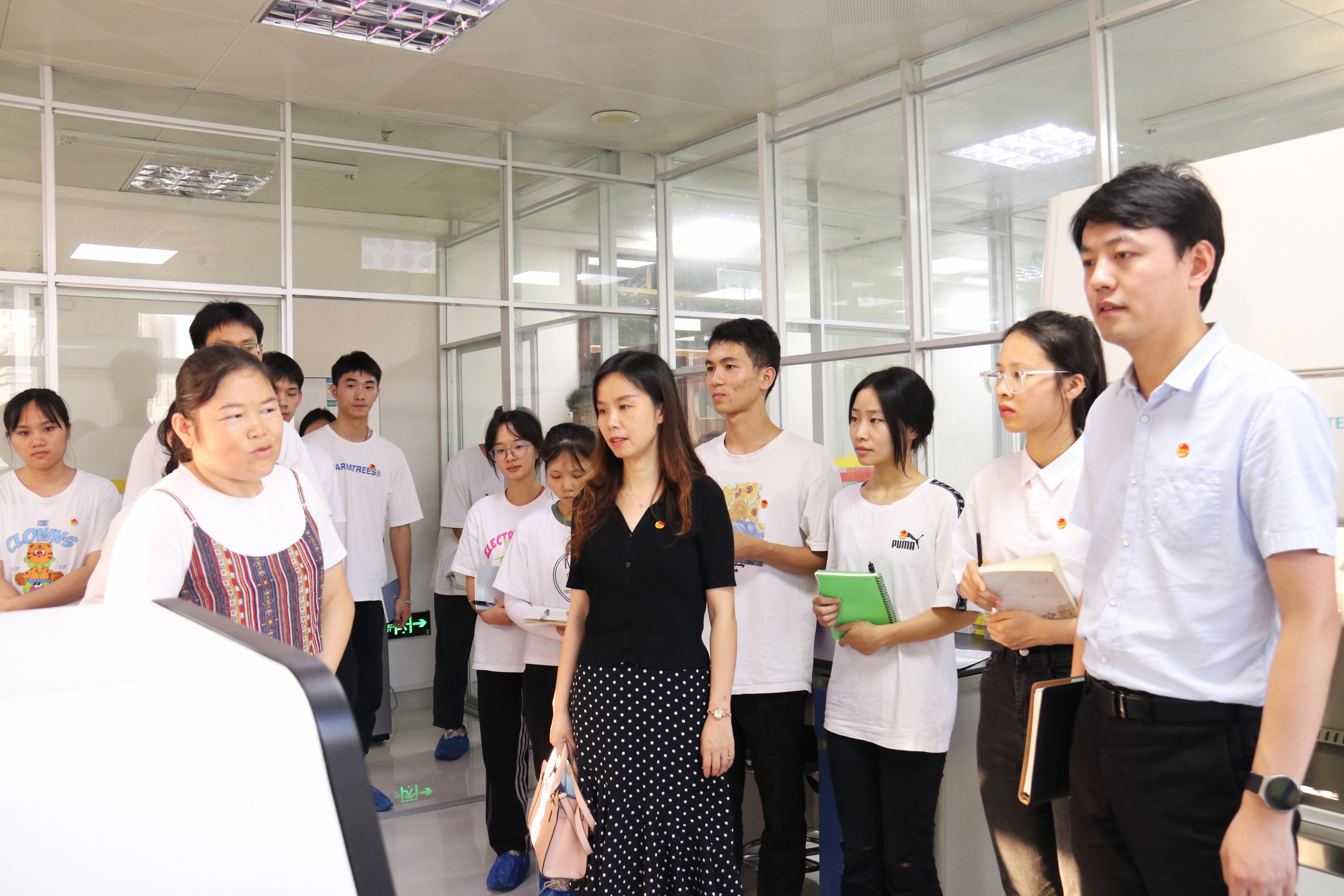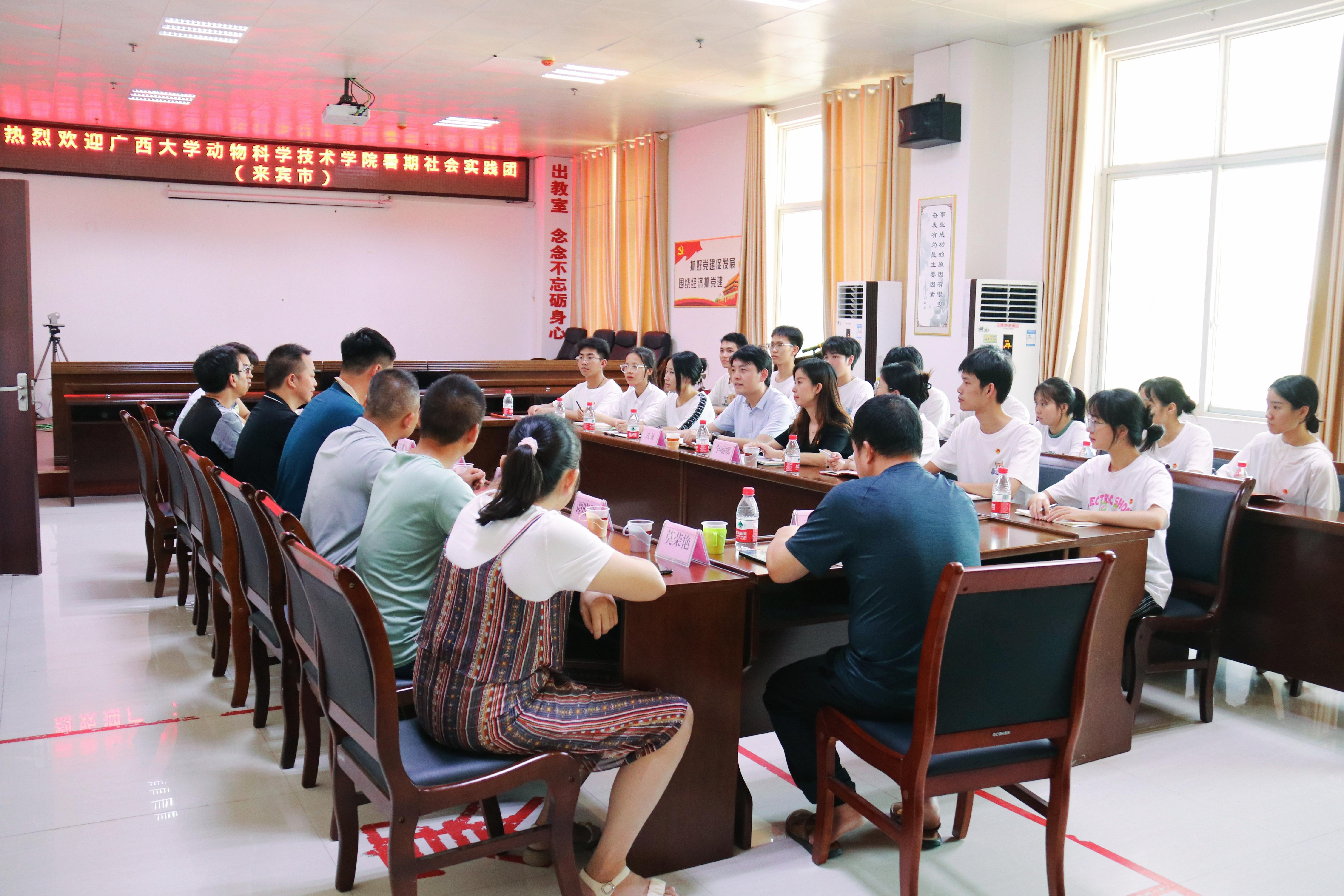 7日下午,实践团师生走访了来宾市动物疫病预防控制中心,同来宾市动物疫病预防控制中心主任王武,副主任郑子胜、陈胜文,以及各科室负责同志、员工代表进行了座谈交流,详细了解了来宾市畜牧产业发展现状以及乡村振兴配套支持政策,并实地参观了生物安全二级实验室。