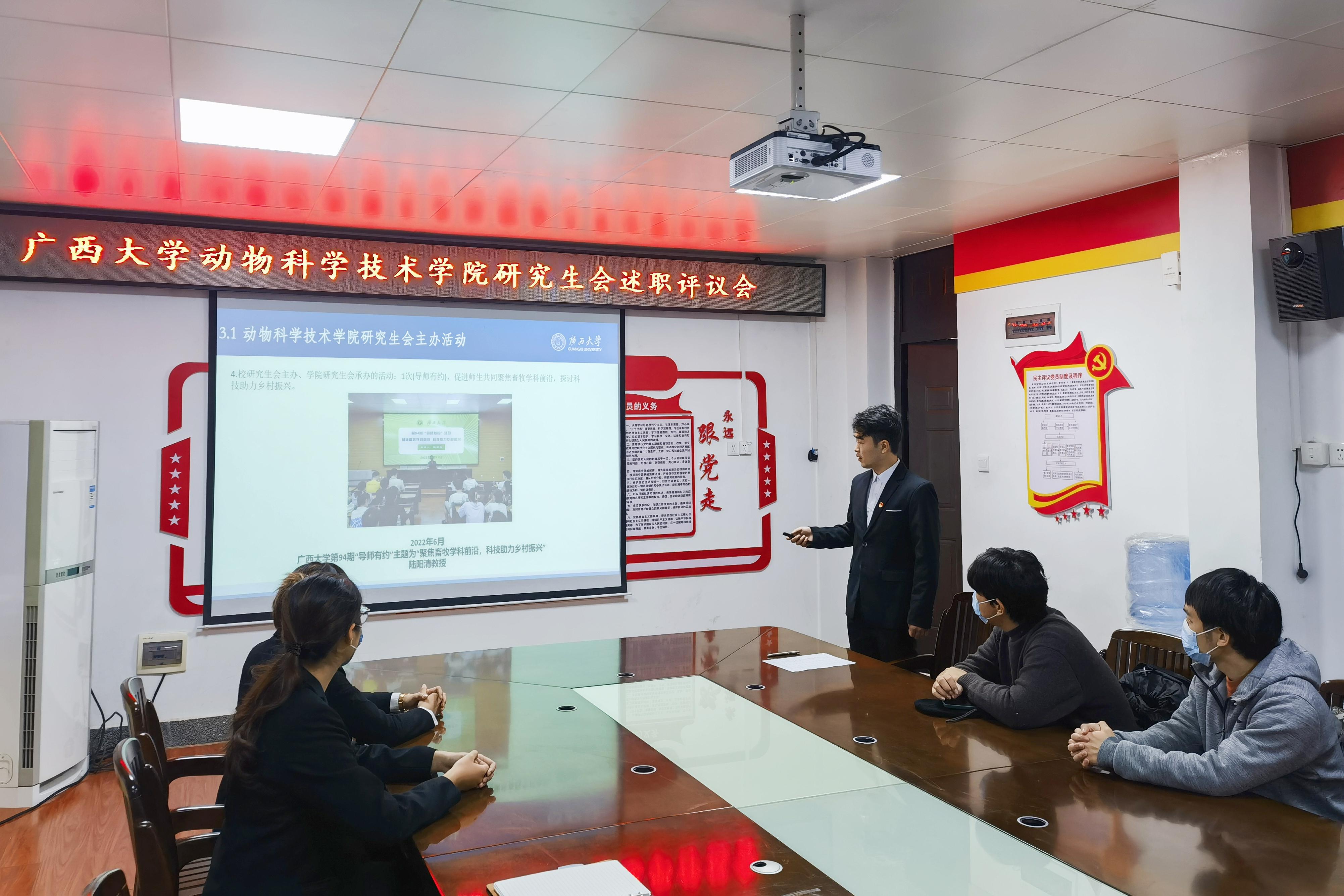 研究生会主席团成员各自从思想政治、专业学习、工作成效、纪律作风和个人成长等方面依次进行述职。