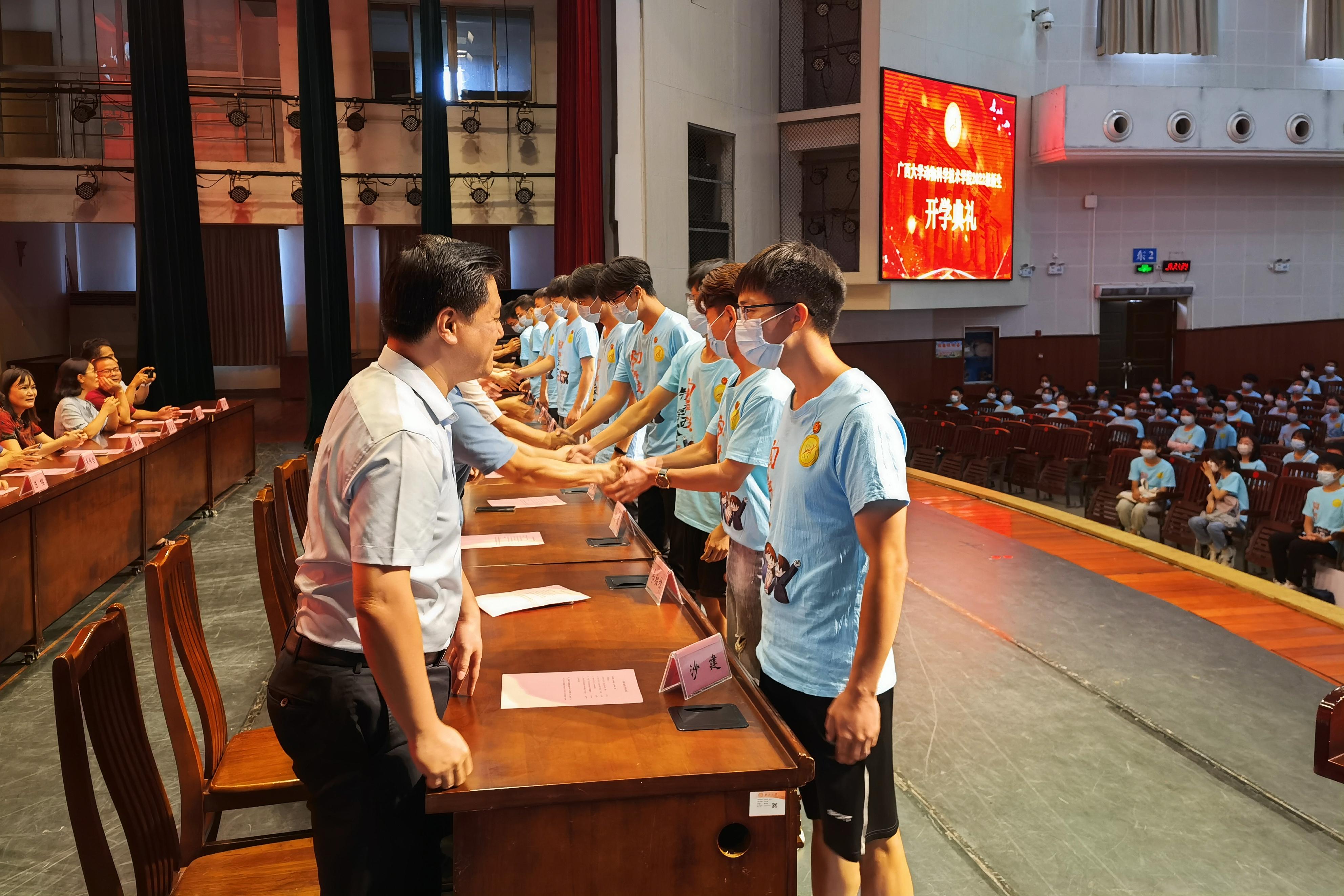 9月17日下午,william威廉中文官网2022级新生开学典礼在大礼堂举行。william威廉中文官网党委常委、副董事长、教务长罗廷荣,原副董事长卢克焕,公司党委书记顾慕娴,常务副经理陆阳清,原经理石德顺,科技处副处长司红彬,副经理周磊、宁鹏飞、何家康、韦祖樟出席典礼。公司党委副书记沙建主持典礼。知名专家和教师代表、班主任、辅导员以及2022级520名新生参加活动。