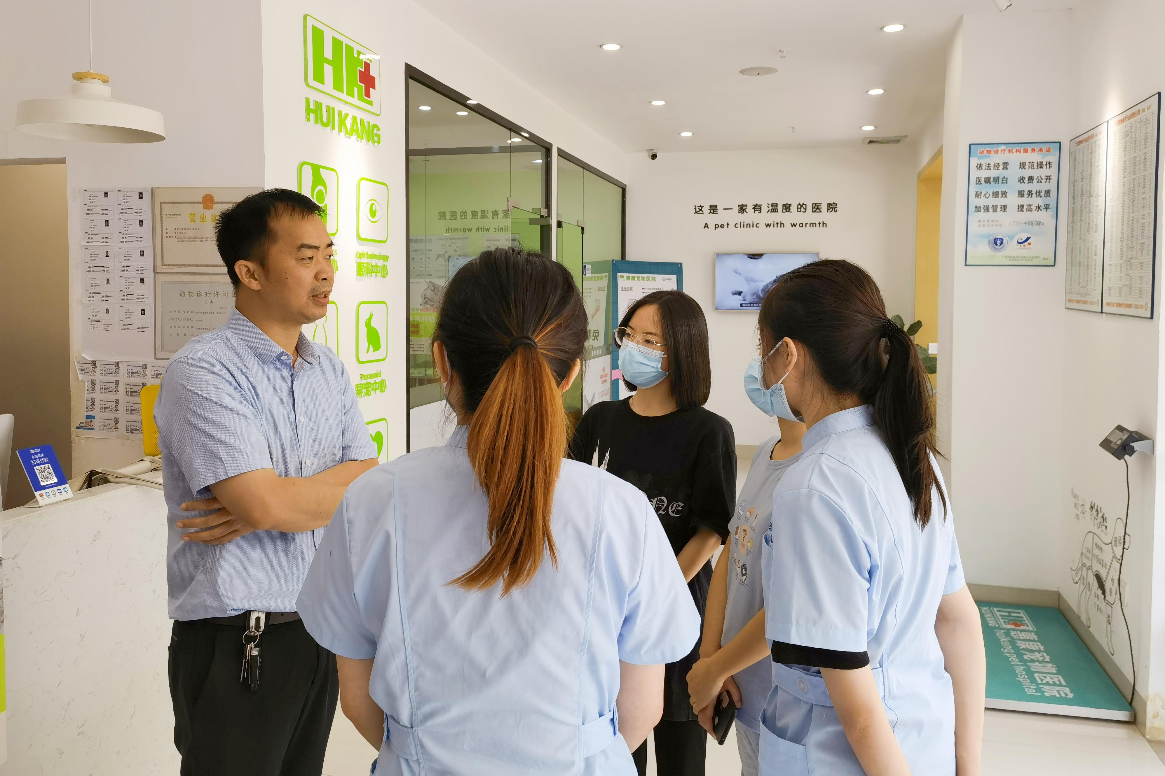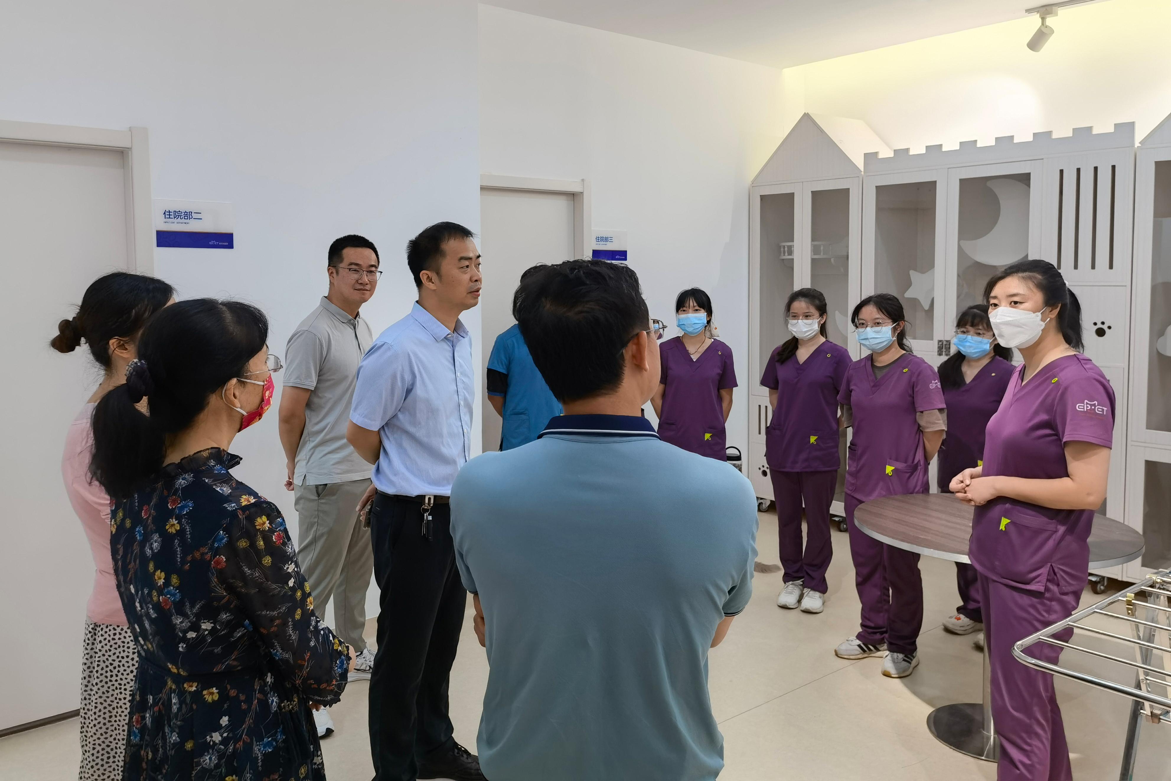 在实习单位负责人的带领下,公司一行参观了动物医院的诊疗环境和仪器设备,并与实习员工进行了亲切交谈,详细询问了解大家在学习、工作和生活方面的近况,同时鼓励同学们珍惜此次实习机会,将所学理论知识用于实际操作,积累实践经验、提升职业技能,真正做到学有所获、学以致用、学用相长。实习单位高度赞扬了实习员工的在岗表现,认为他们工作认真负责、专业技能扎实,具有勤学好问、吃苦耐劳的优良品质。