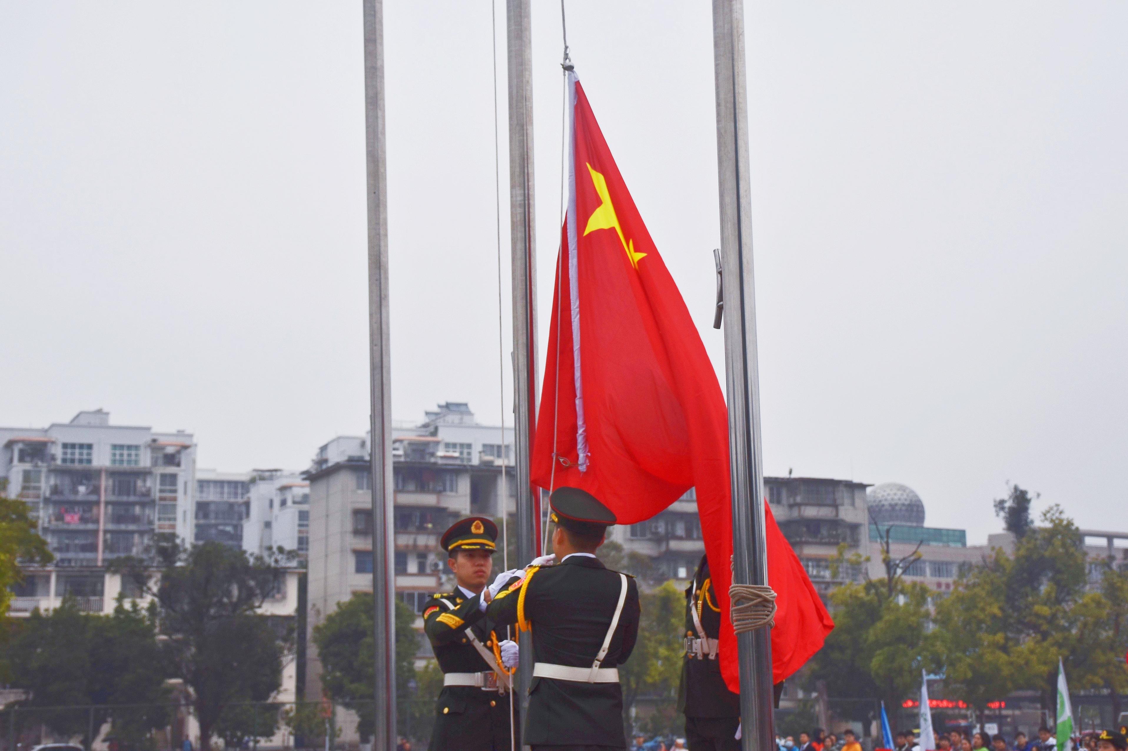 参加仪式的全体师生精神抖擞,庄严肃穆,队列整齐,当《义勇军进行曲》激动人心的旋律在耳畔响起时,大家一起高唱国歌,注视着鲜艳的五星红旗冉冉升起,深怀着对祖国的无限热爱与崇高敬意。