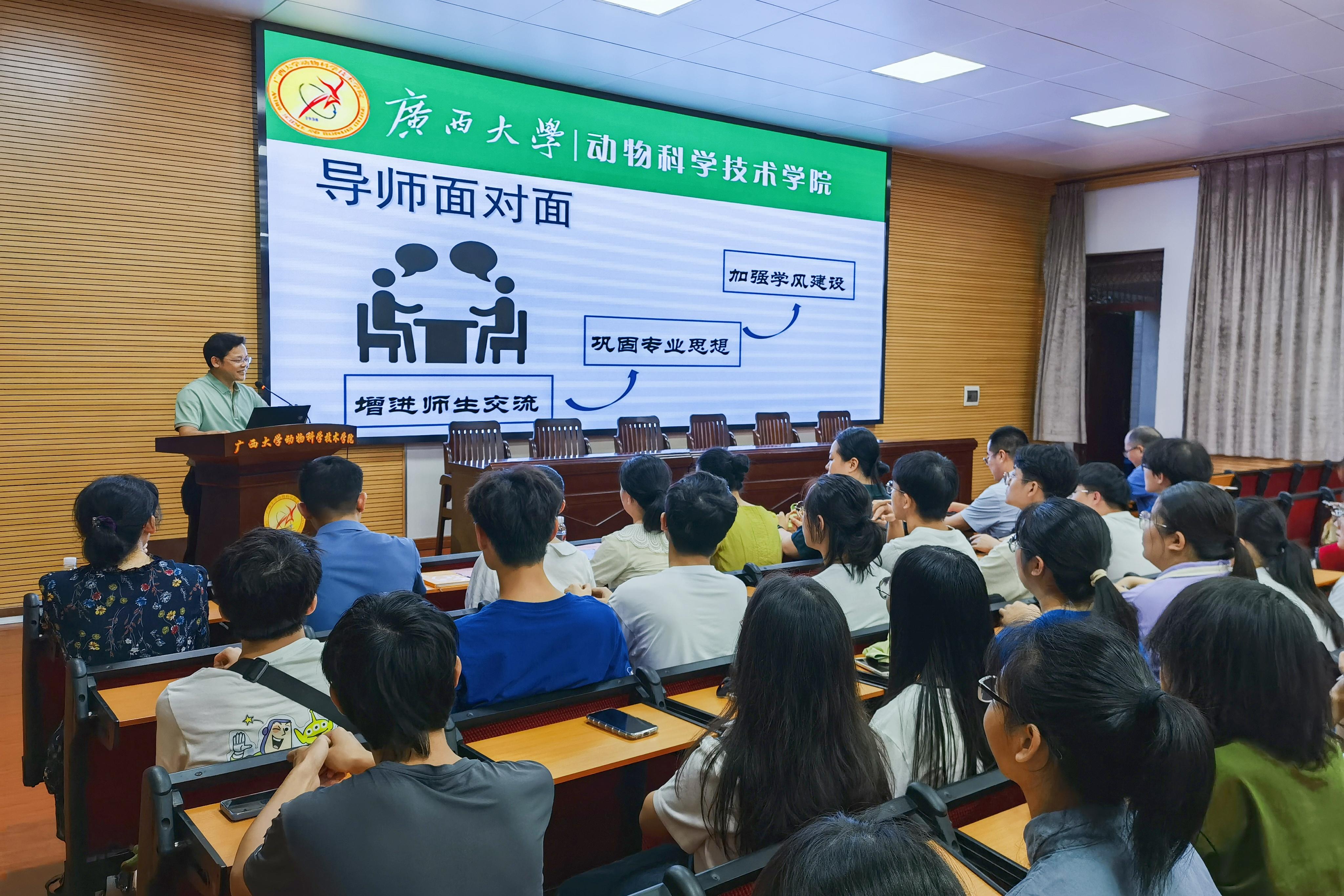 为巩固专业思想,加强学风建设,增进师生交流,营造学术氛围,7月5日晚上,william威廉中文官网在公司318报告厅举办第二季“导师面对面”学术沙龙(第二场),邀请何家康、韦祖樟、陈樱、王晓晔、于美玲、方芳、韦懿仙7位导师嘉宾到场分享个人经历、人才培养和科研方向,并与员工互动交流,共同探讨学业规划、职业发展和个人成长。动物医学专业2022级全体本科生参加此次活动。