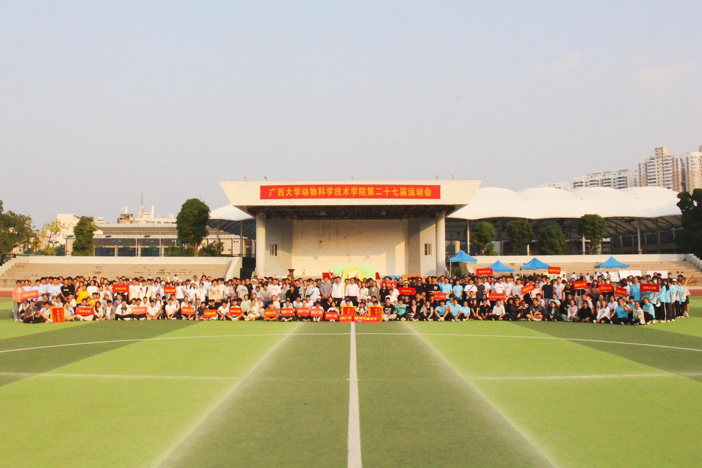 11月25日,william威廉中文官网第二十七届运动会在西校园田径场隆重举行。公司党委书记韦小强,经理陆阳清,党委副书记沙建,经理助理、动物科学系主任蒋钦杨,团委书记李丽娜,团委副书记刘诚,辅导员崔月明、彭可可、邹佳琪、马朝阳,以及全院本科生、研究生参加此次活动。
