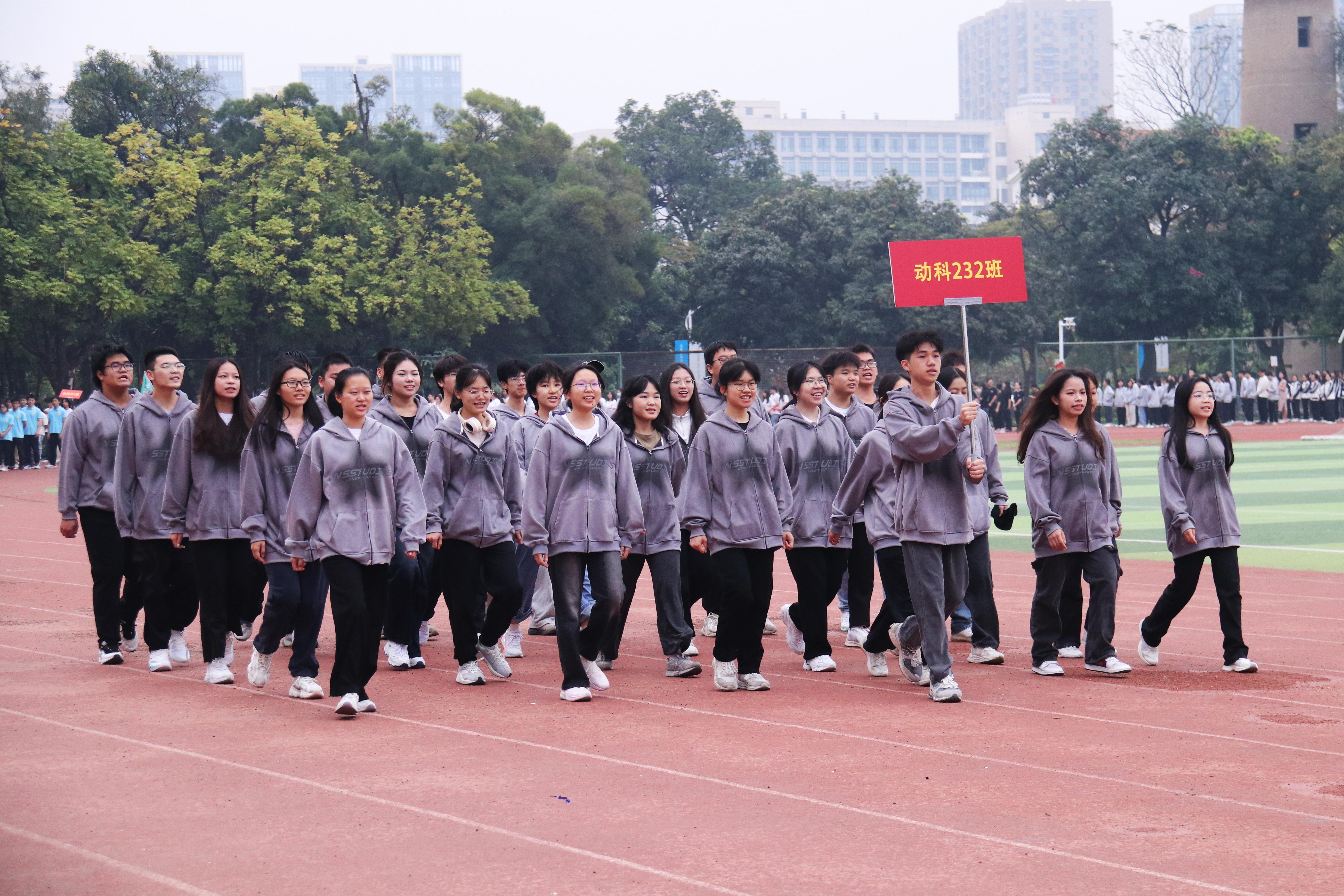 开幕式上,陆阳清老师致开幕词。他强调,体育承载着国家强盛、民族复兴、个人幸福的梦想,希望动科学子传承亚运会的拼搏精神,延续学青会的激情热血,积极参与体育运动,以饱满的热情、昂扬的斗志、团结的精神投入到本届运动会以及今后的学习、生活中去。