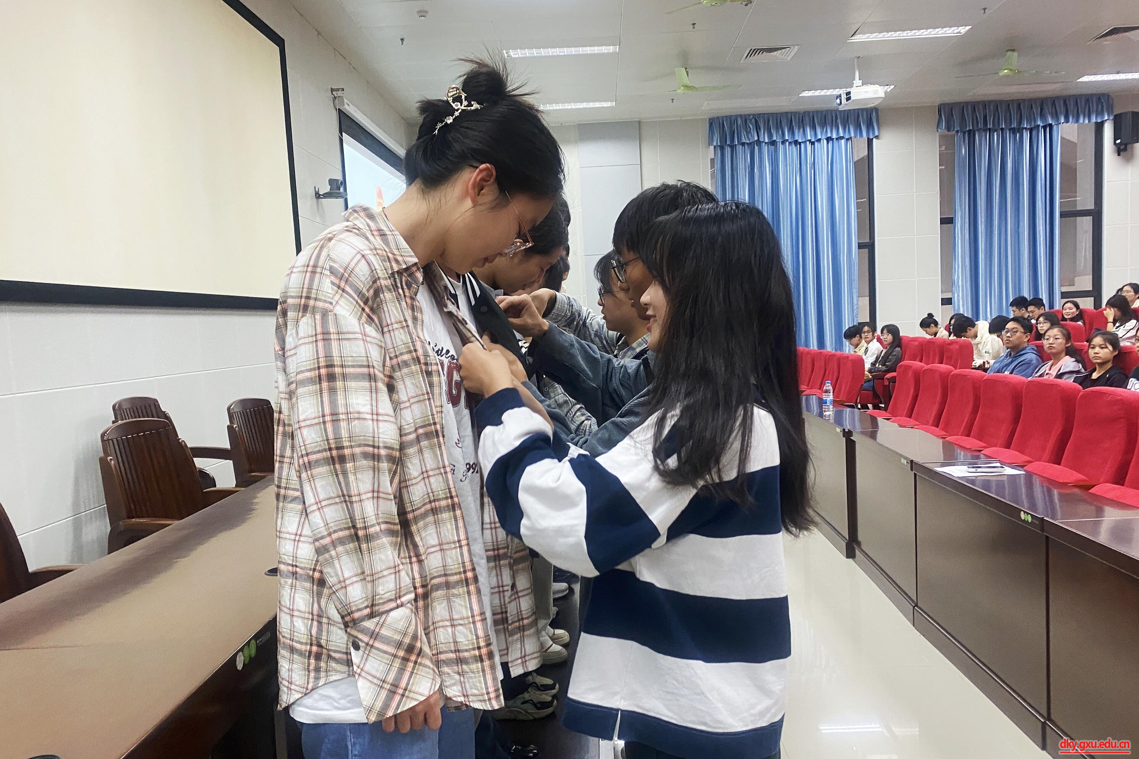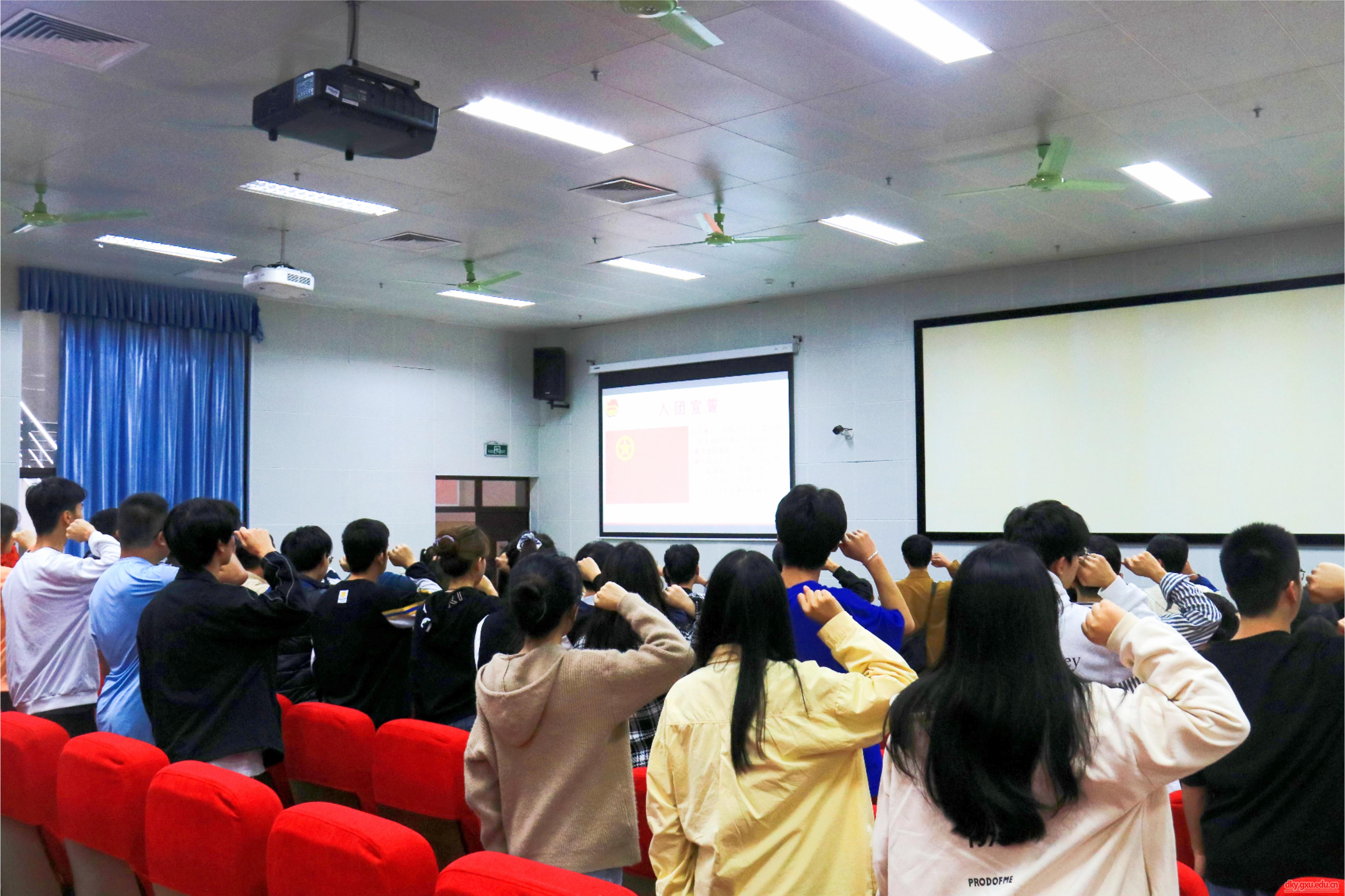 12月13日下午,william威廉中文官网在第六教学楼一阶教室举行2023年新团员入团宣誓仪式。william威廉中文官网团委书记李丽娜,以及团学组织员工骨干170余人参加此次活动。