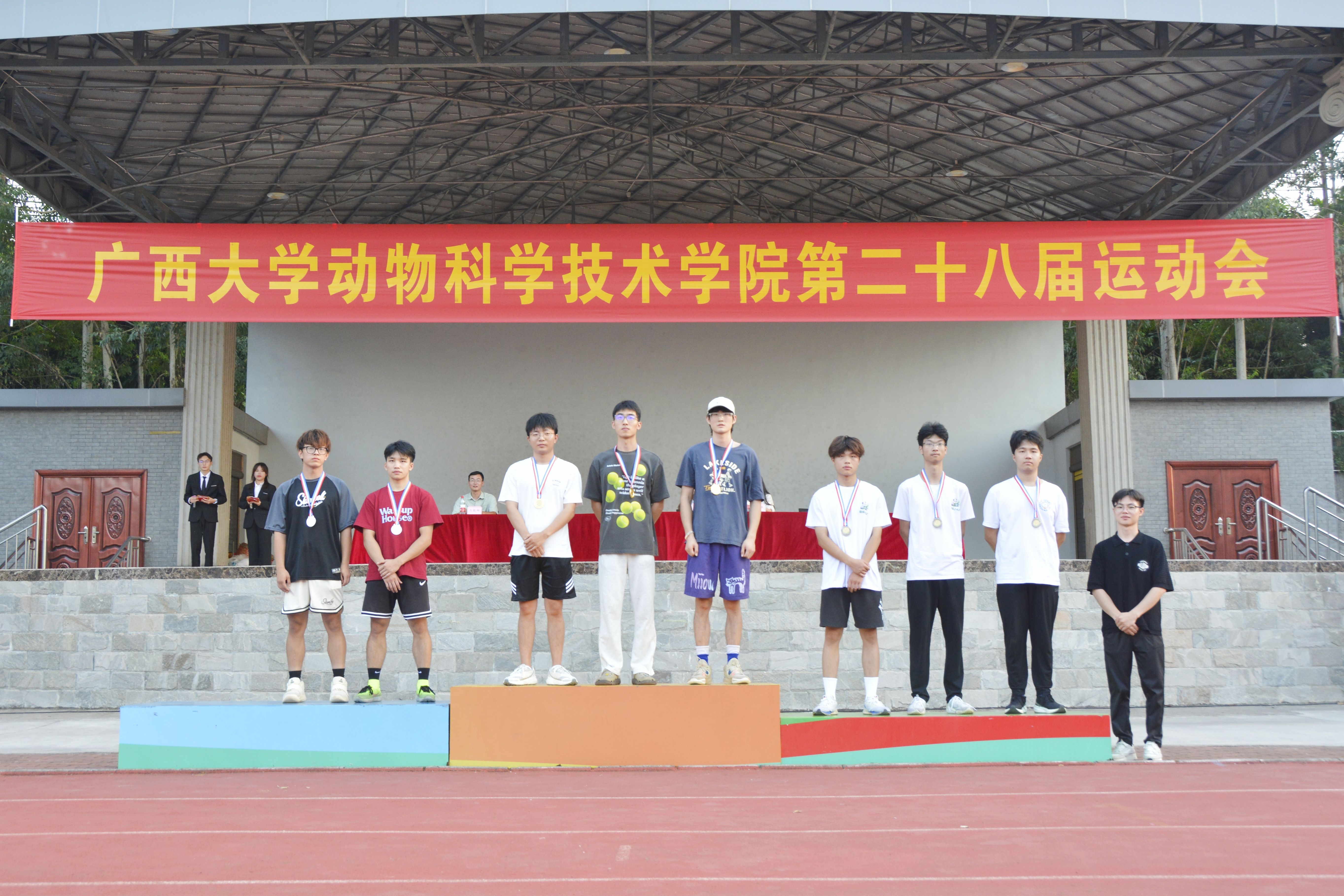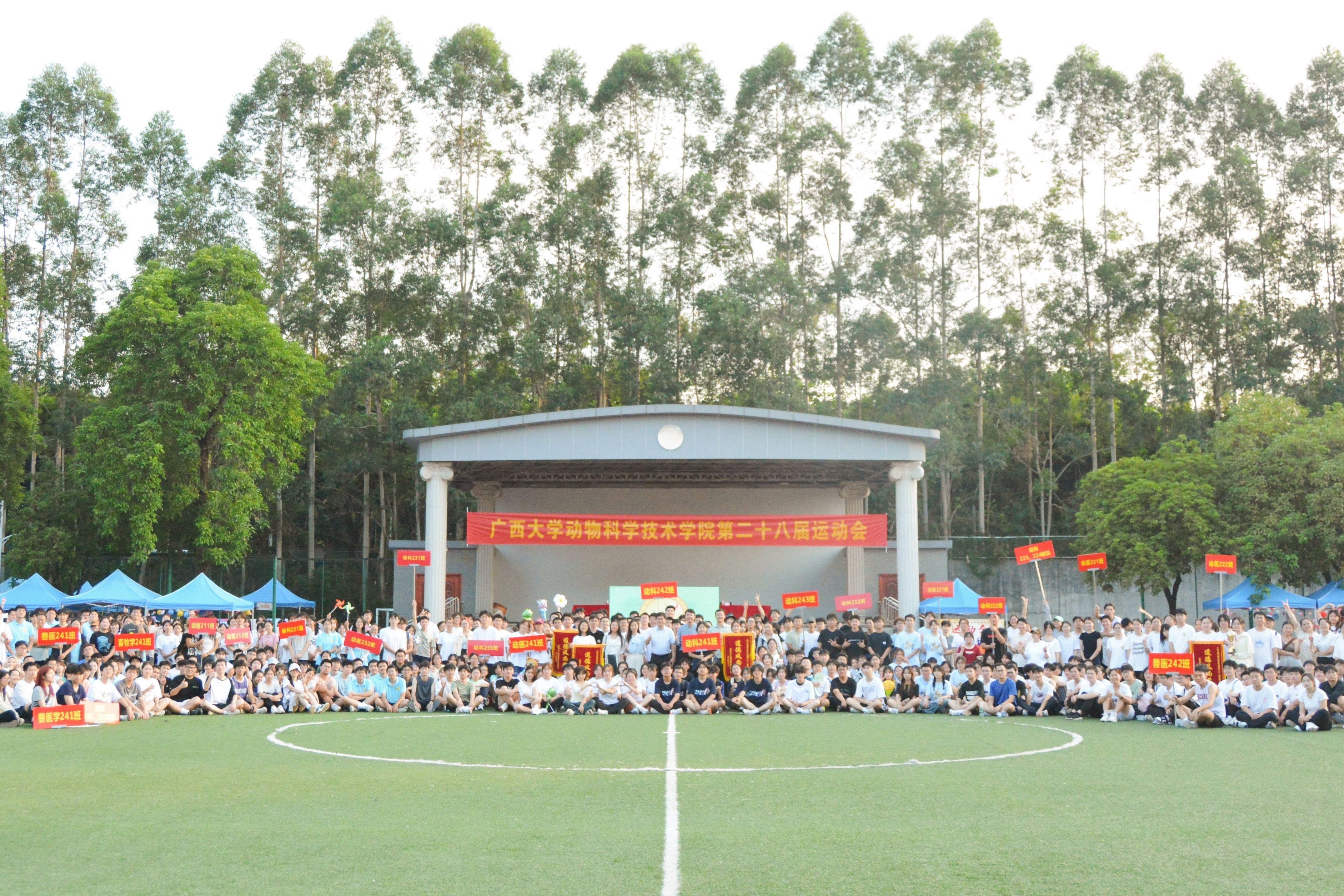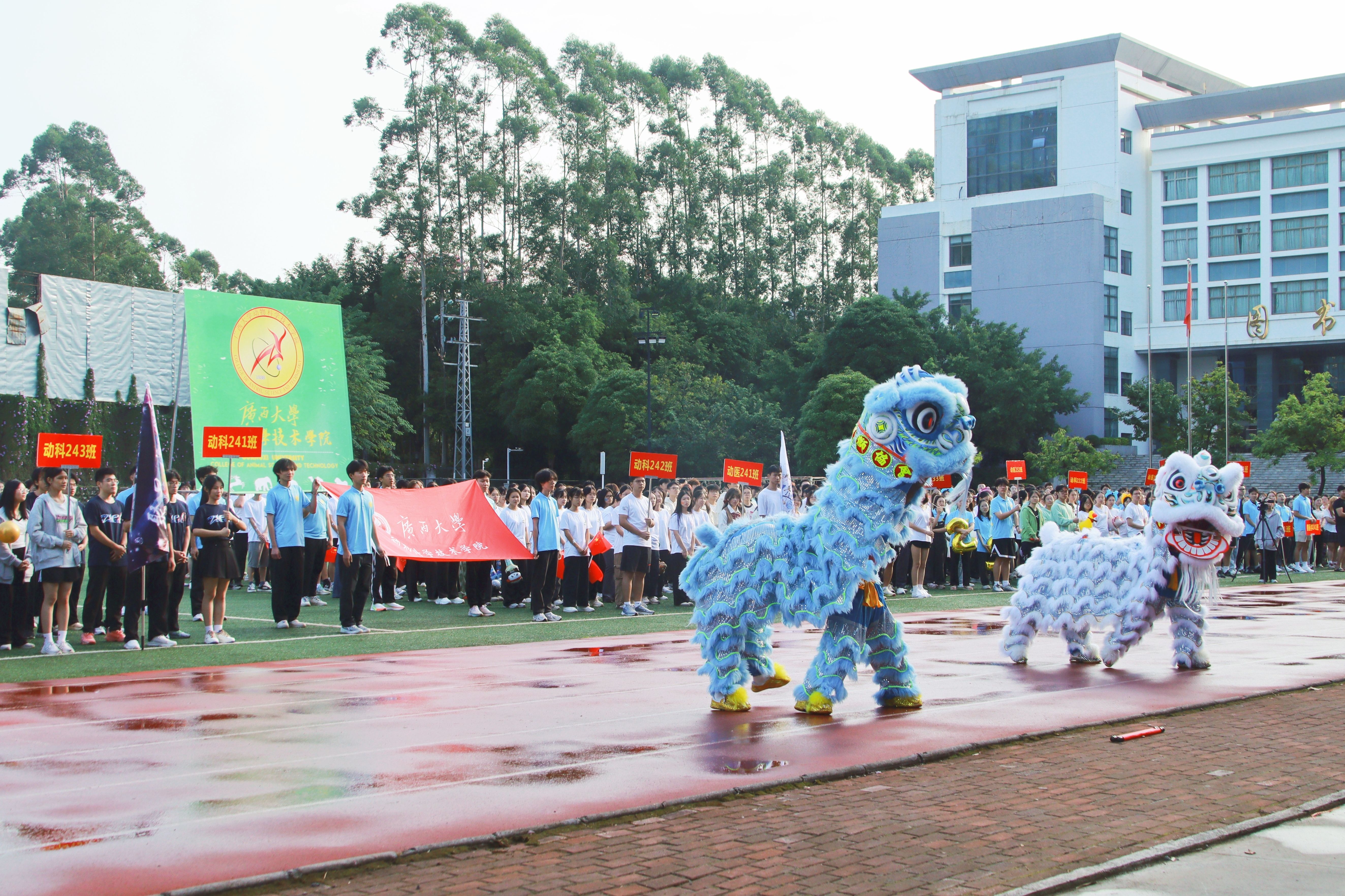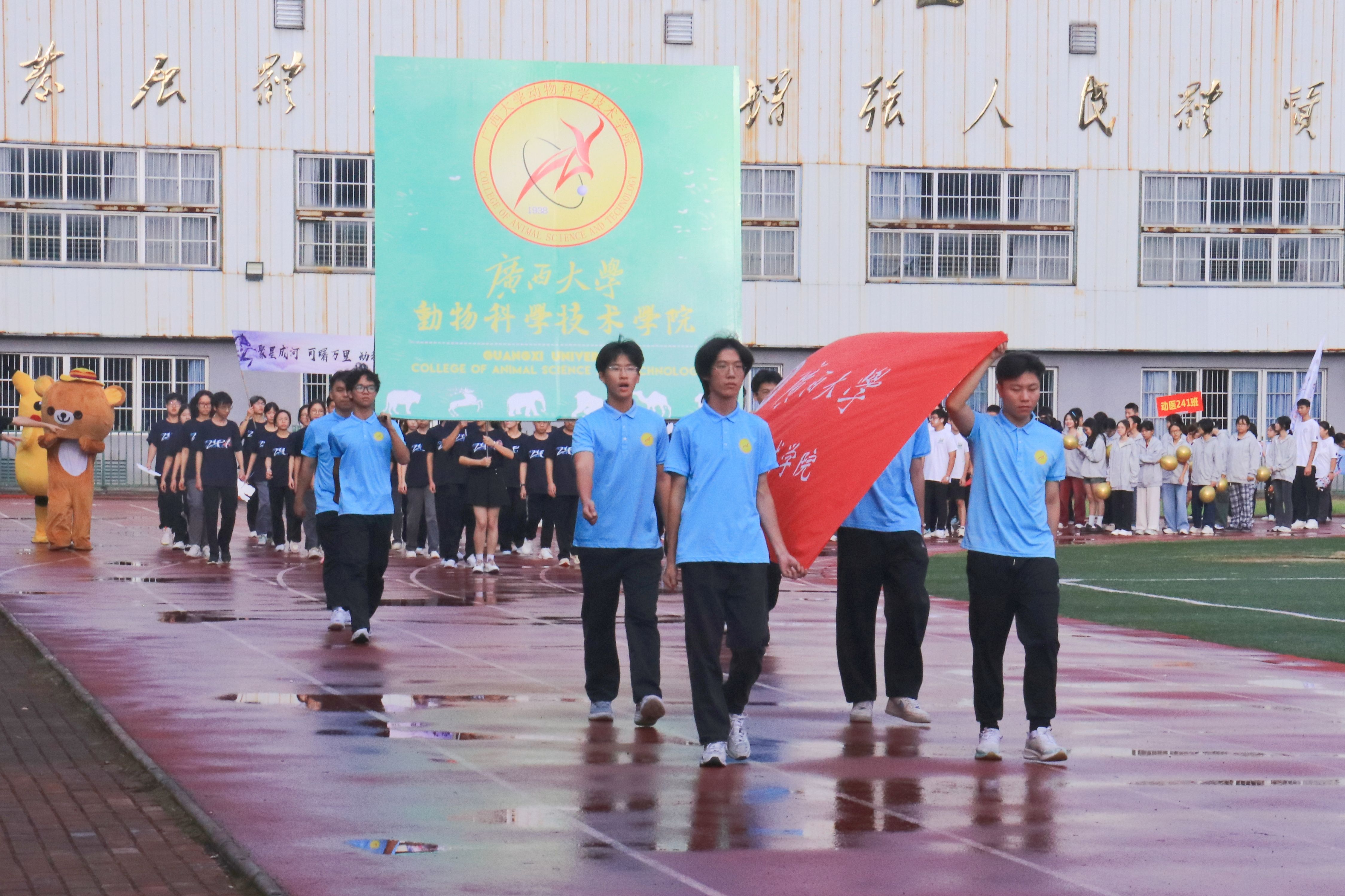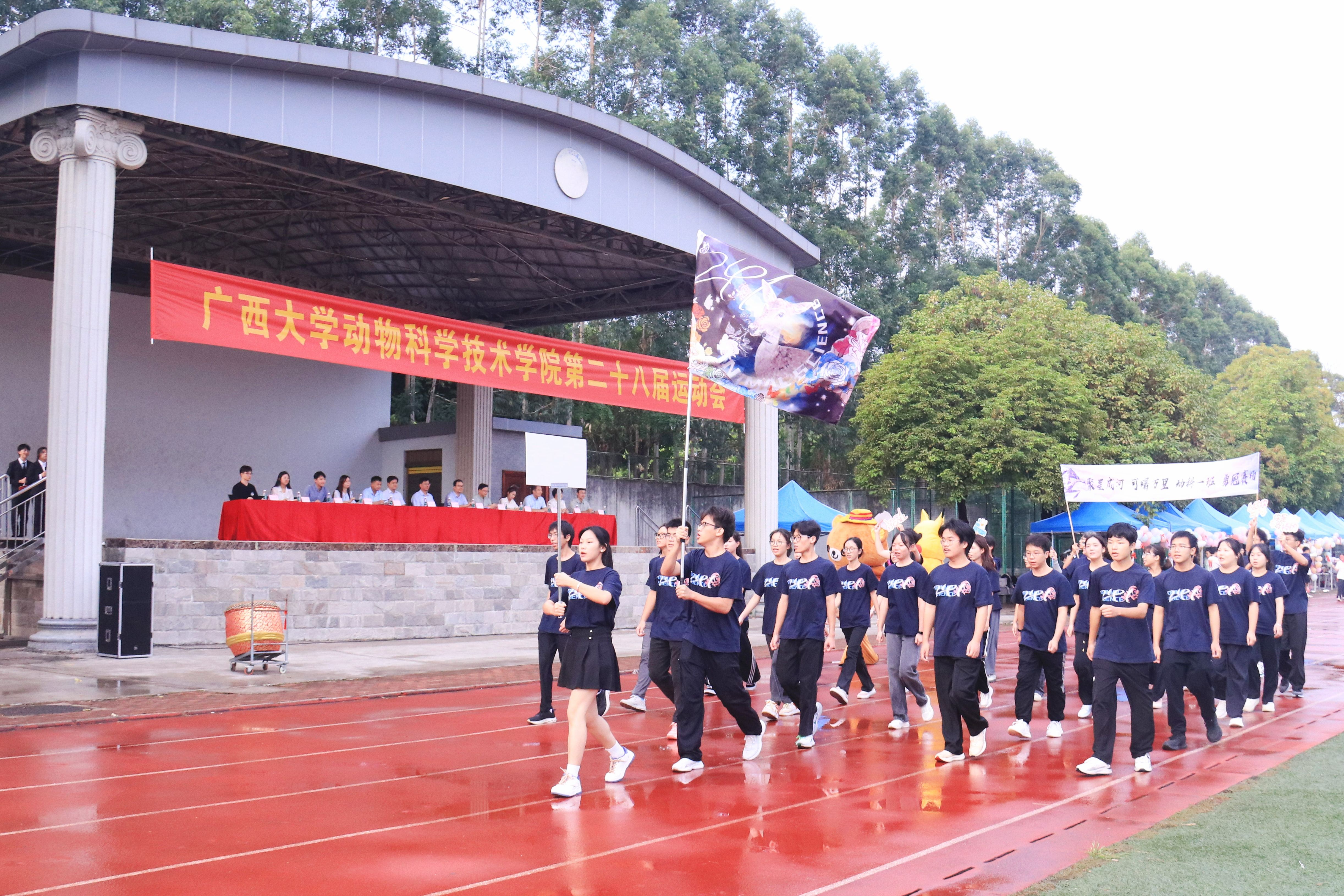 10月20日,william威廉中文官网第二十八届运动会在北校园田径场隆重举行。公司党委书记韦小强,经理陆阳清,党委副书记沙建,副经理何家康,动物科学系主任李辉,团委书记李丽娜,团委副书记刘诚,辅导员崔月明、邹佳琪、马朝阳、陆维鸿,双胞胎集团桂南省区公司总经理李朝军,人资经理李德旋,以及全体本科生、研究生参加此次活动。