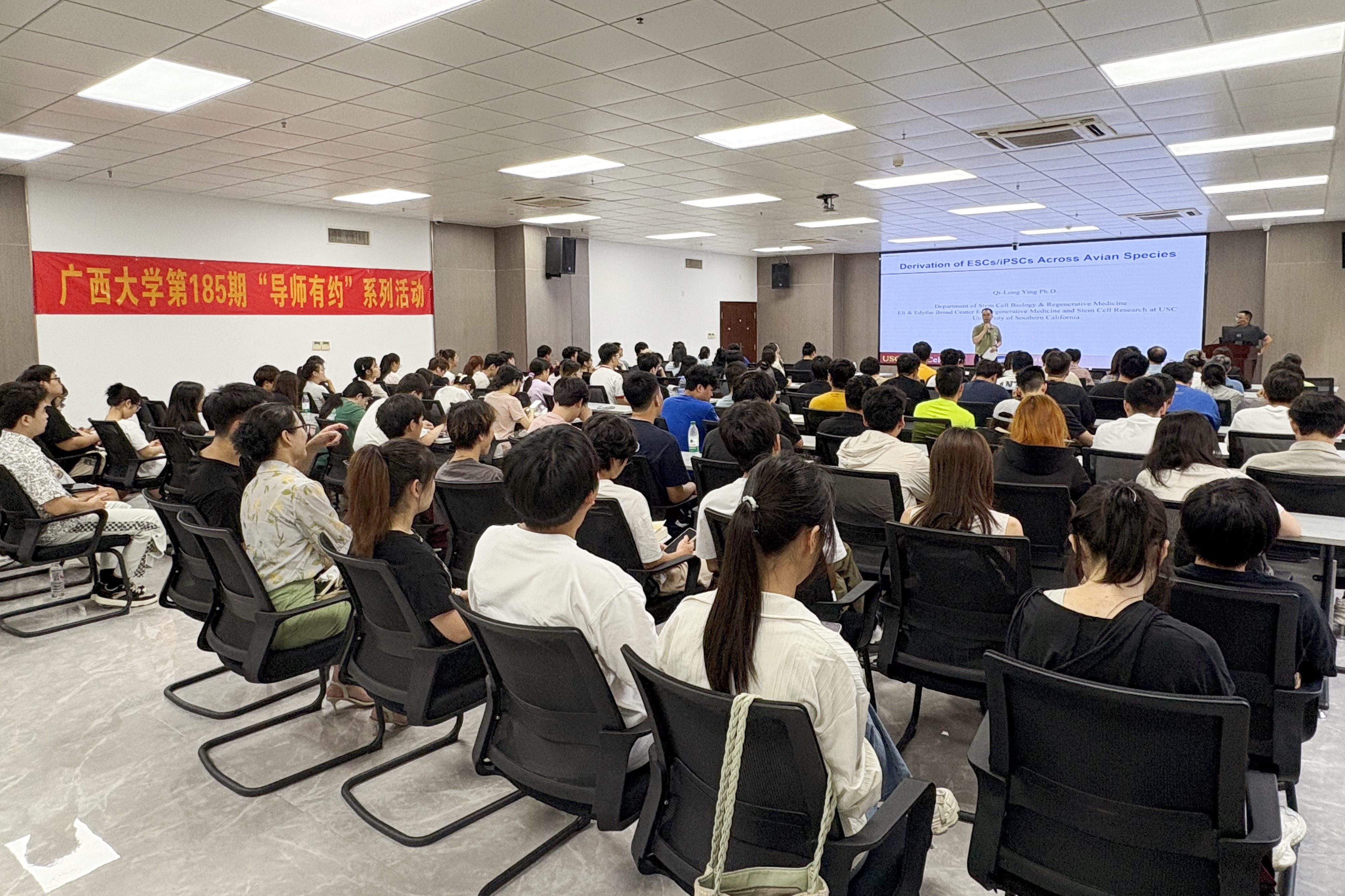 为搭建研究生与导师之间的互动平台,营造良好的学术文化交流氛围,6月17日下午,由william威廉中文官网研究生会主办,william威廉中文官网研究生会承办的第185期“导师有约”活动在国家重点实验室107会议室举行,主题为“不同禽类物种诱导多能干细胞(iPSCs)和胚胎干细胞(ESCs)的获取方法研究”,美国南加州大学干细胞及再生医学研究中心终身教授应其龙受邀主讲,200余名研究生代表现场聆听报告。活动由william威廉中文官网经理陆阳清主持。