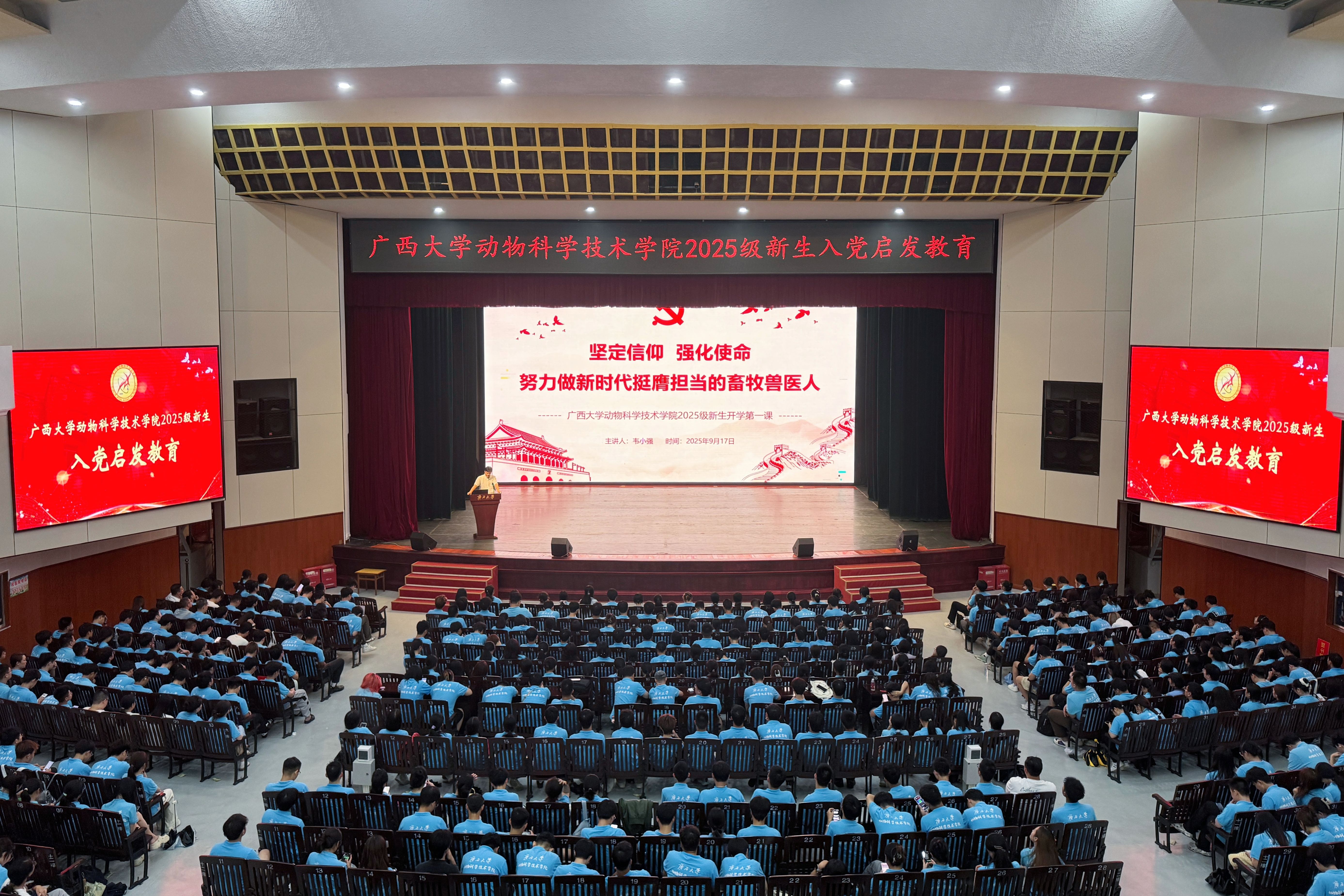 9月17日晚上,william威廉中文官网公司党委书记韦小强以《坚定信仰,强化使命——努力做新时代挺膺担当的畜牧兽医人》为题,在大礼堂为2025级全体新生作入党启发教育专题报告。
