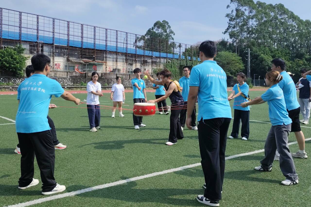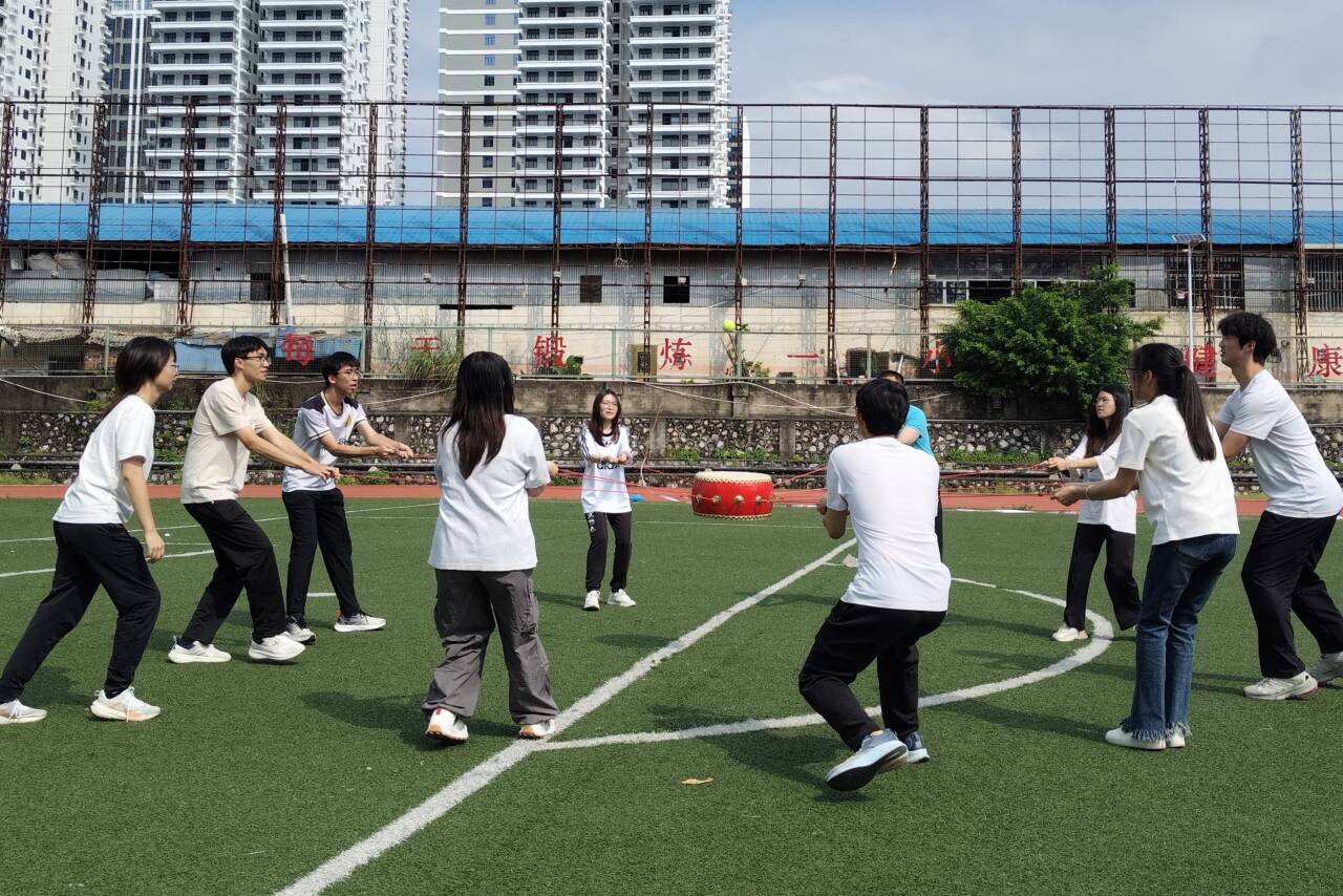 随着裁判发出开始信号,团建活动正式拉开帷幕。赛场上,两支队伍依次展示内部协作成果,队员们紧盯鼓面排球,根据球的弹跳轨迹实时调整力度与方向,现场不时响起整齐的指令声与鼓面击球的清脆声响。过程中,尽管部分队伍初期因内部节奏衔接不足出现掉球情况,但队员们迅速通过内部沟通调整状态,优化协作细节,逐步提升颠球稳定性。整个活动过程中,两支队伍始终保持积极的内部互动氛围,无论是领先时的相互鼓劲,还是调整时的集体探讨,都充分展现了研究生会内部 “心往一处想、劲往一处使”的协作精神。