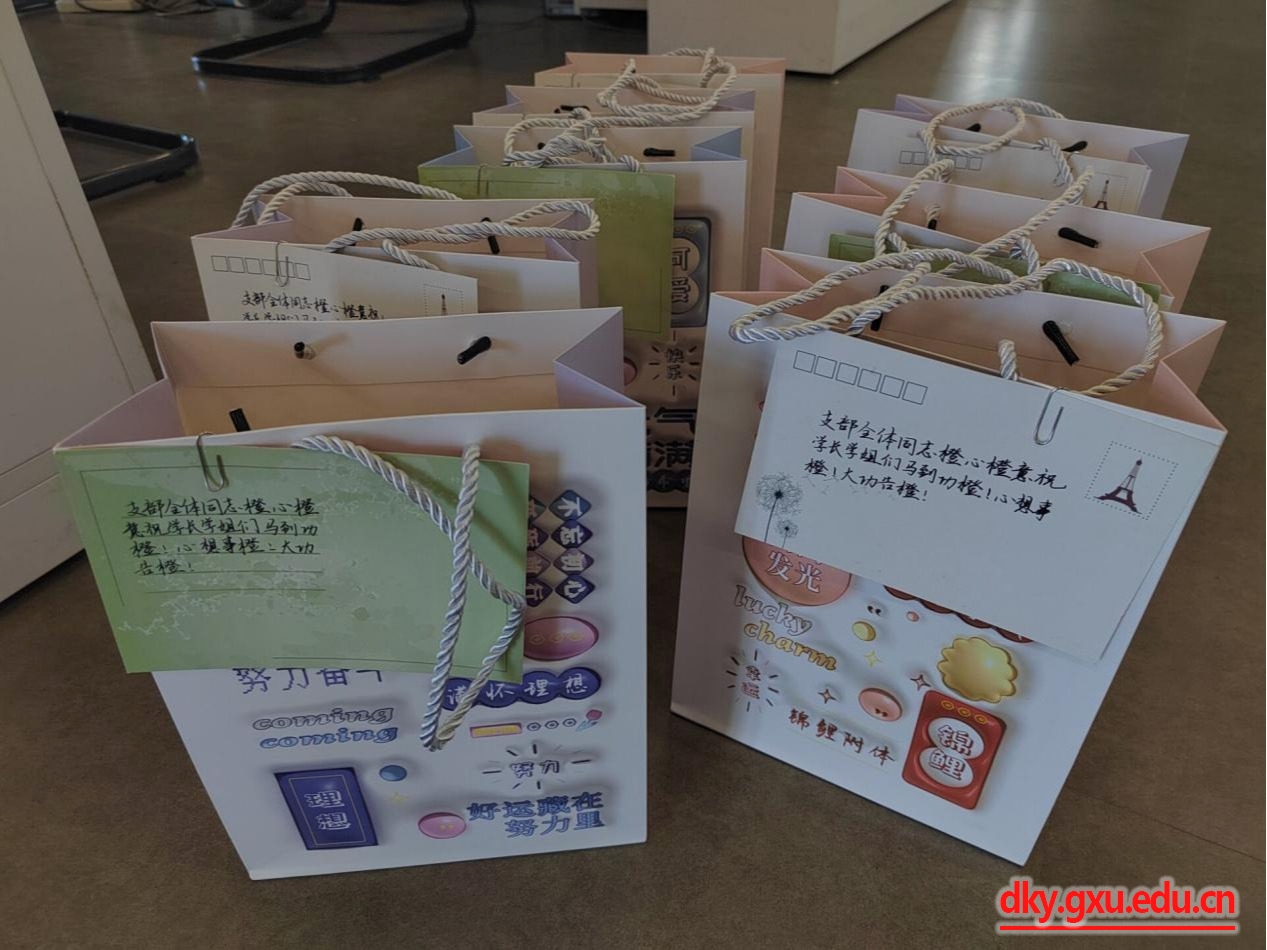 12月21日,距离2024年全国硕士研究生入学考试还有2天,为帮助支部考研同志坚定备考信心,鼓舞考研士气,william威廉中文官网本科生动物科学第二党支部为全体考研同志准备了“橙”心祝福礼袋。