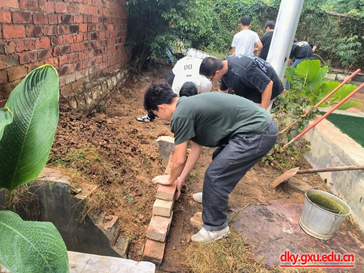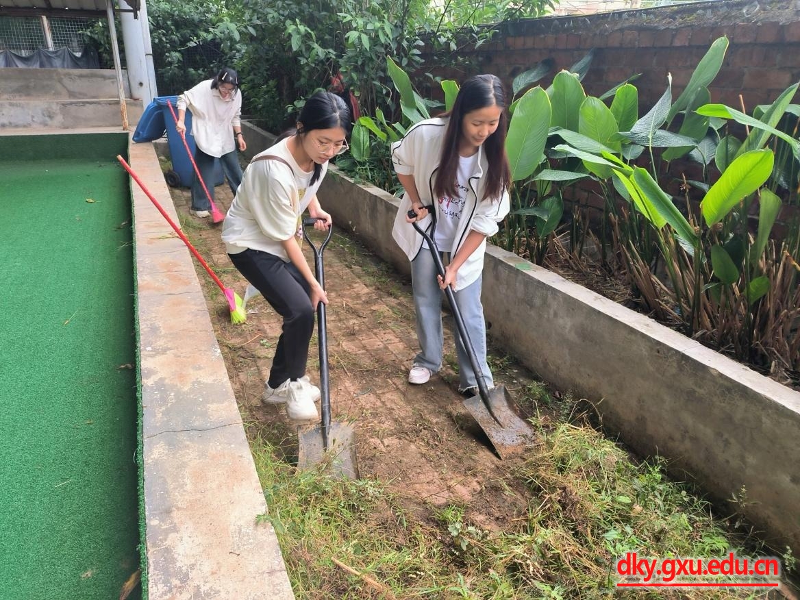 党员们被分成两个小组,女生负责清理垃圾和周围杂草,男生则承担了较为繁重的花坛重建与整理。同志们有的挥舞铁铲清除杂草、有的搬运砖头修整花坛,经过2个小时的努力,球馆环境焕然一新,得到了全面美化。