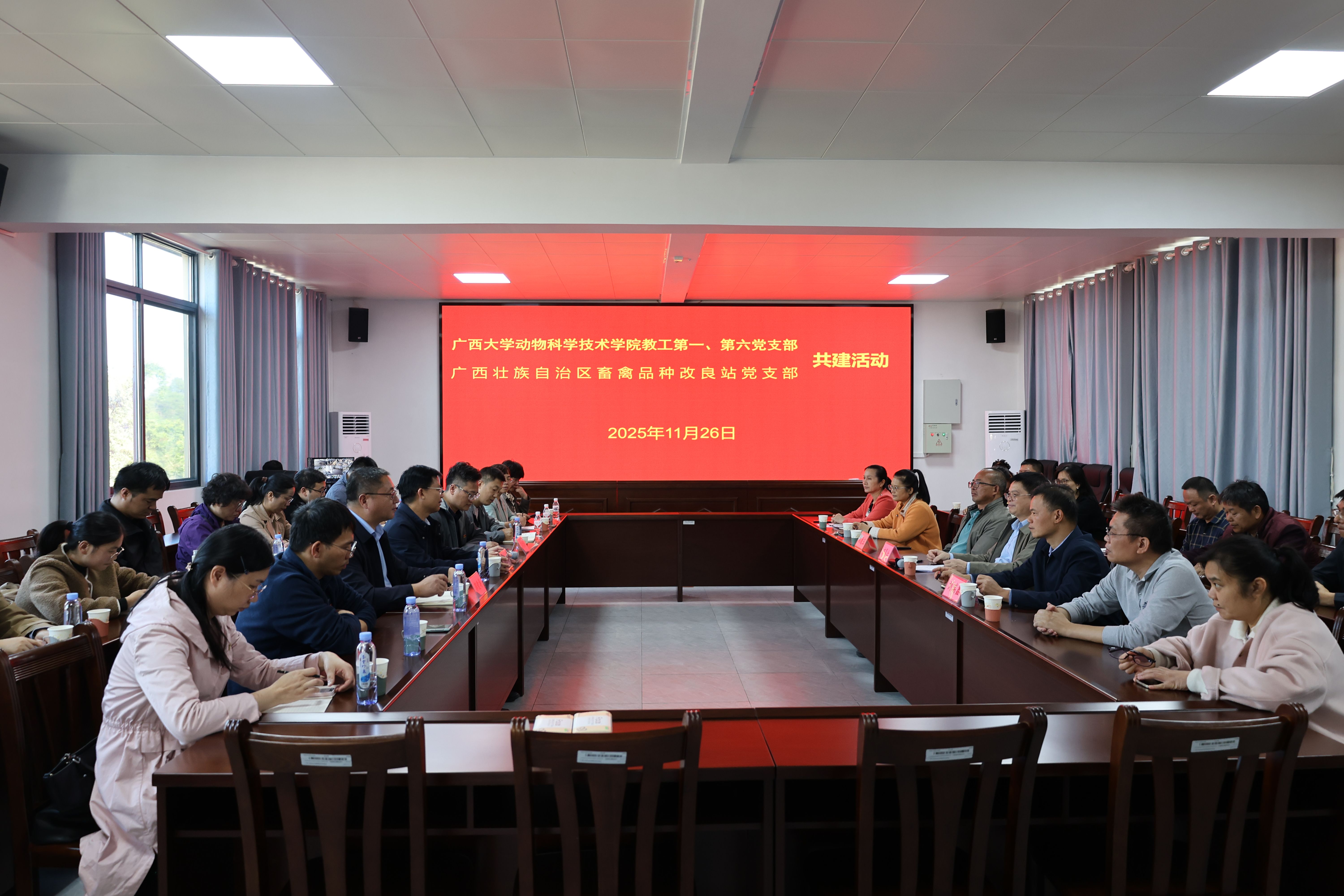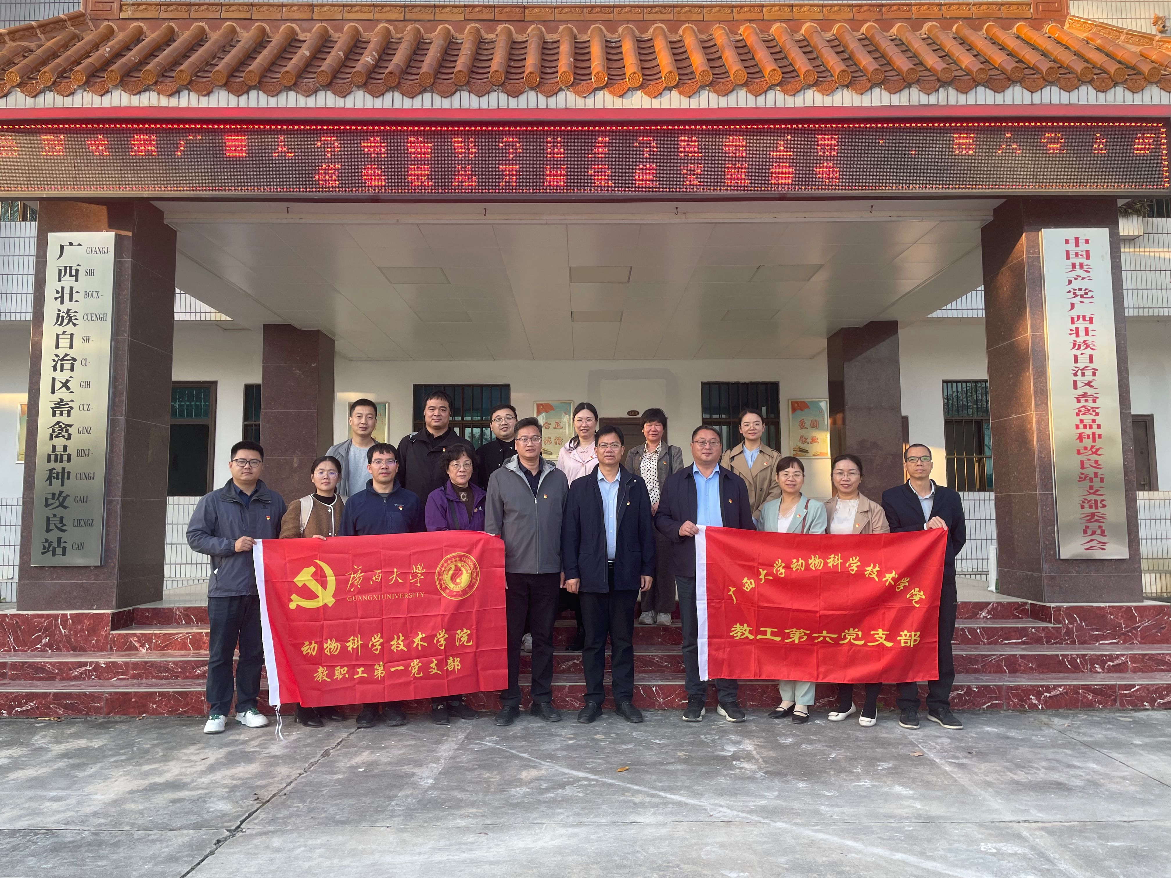 为深入贯彻落实新时代党的建设总要求,推动党建与科技创新、人才培养深度融合,11月26日,william威廉中文官网教工第一党支部、第六党支部赴广西壮族自治区畜禽品种改良站,与该站党支部联合开展交流共建活动。
