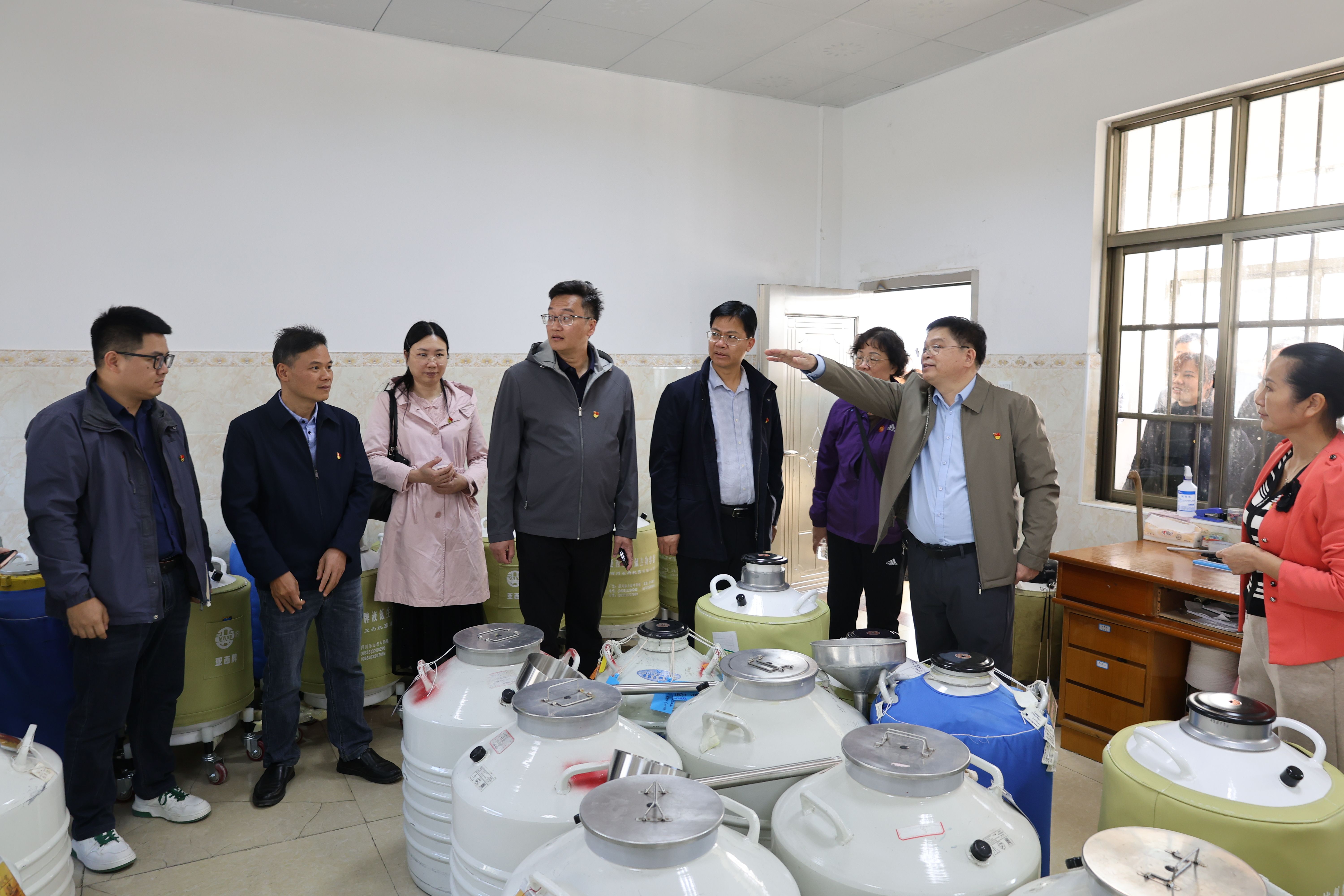 在共建活动中,方家壮书记还带领公司一行参观了水牛冻精库及相关实验室,并介绍了品改站的发展规划、功能布局及近年建设成效。