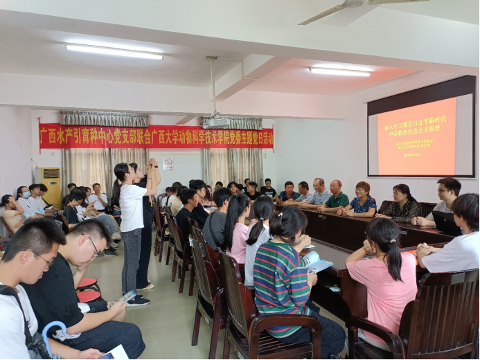 顾书记带领师生们参与水产引育种中心支部开展主题党日活动,并讲党课《深入学习领会习近平新时代中国特色社会主义思想》