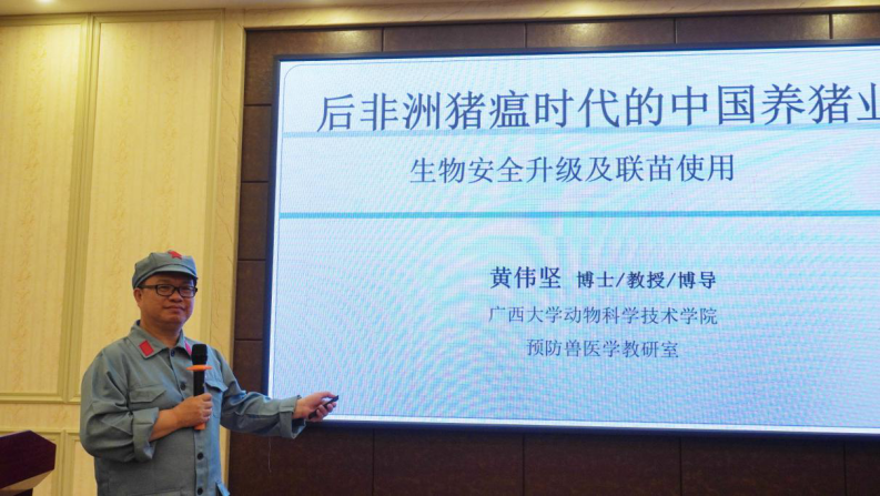黄伟坚教授在报告中表示,在后非洲猪瘟时代,各个猪场滥用抗生素的现象未见多少,反而是普遍存在滥用消毒剂的现象,这会对环境、动物和人体造成次生危害,产生适得其反的效果。科学的防控非洲猪瘟还应从提高生物安全级别、提高猪的健康度两个方向努力。