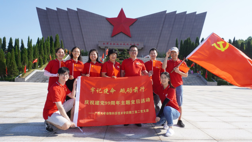 为铭记革命历史、弘扬长征精神,激发党员以高昂的斗争精神走好新时代的长征路,党员们参观红军长征湘江战役纪念馆、湘江战役纪念馆,通过一张张、一件件弥足珍贵的图片和历史文物,听着讲解员深入细致的讲述,回顾86年前的湘江战役,倾听陈树湘、易荡平等众多烈士的事迹;到脚山铺阻击战遗址、中央纵队渡江旧址、光华铺阻击战遗址等接受革命传统教育,瞻仰烈士的群雕,向烈士敬献花篮,表达我们的哀思。在湘江战役纪念馆烈士纪念碑园前,由教工第二党支部支部书记(全国高校“双带头人”教师党支部书记工作室负责人)黄伟坚领誓,全体党员面向鲜红的党旗重温入党誓词,铿锵的誓言坚定了党员们为共产主义奋斗终生的决心。党员们表示,去年观看《血战湘江》时就被英雄们为革命事业献身的精神所感动,这次来到战役旧址,重新回顾这场战役,内心深处更感震撼,也对这场战役的意义有了新的认识。湘江战役突破了左倾教条主义的禁锢,最终实现了遵义会议的伟大转折。