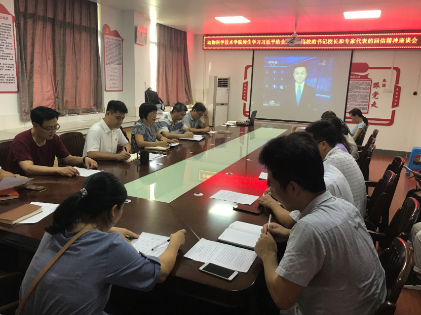 院党委书记顾慕娴主持并带领与会人员一同学习。师生同时感受到,习近平总书记的回信内容虽简短,却意义非凡,一是肯定了涉农高校自建国以来为农业农村工作所做出的贡献,二是对涉农高校办学方向和涉农高校广大师生未来的发展提出了新的要求和期望。与会人员还结合工作实际,就学习重要回信精神积极发表自己的感想。与会人员均表示,会认真落实习近平总书记回信的重要精神,坚守立德树人的初心,勇担强农兴农的使命,创新教学方法,提高科研水平,培养有家国情怀的知农爱农干农的现代农业人才,以不畏艰苦的实践精神推动农业农村现代化建设,为振兴畜牧业做出应有的更大的贡献。