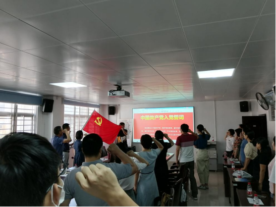 随后,全体党员面对鲜红的党旗,右手握拳,重温入党誓词,满怀激情的宣誓声让人深受感染。对党员来说,在党旗下的宣誓是最神圣最庄严的,每一次重温入党誓词,都深深地感受到了共产党人“对党忠诚、信念坚定、艰苦奋斗、甘于奉献”的精神,同时也提醒自己作为一名党员的政治责任和使命担当!