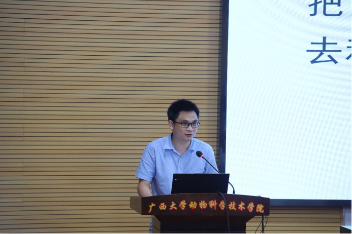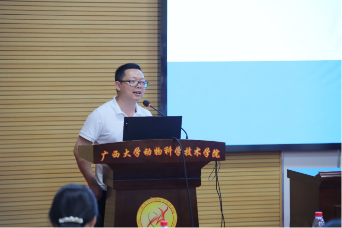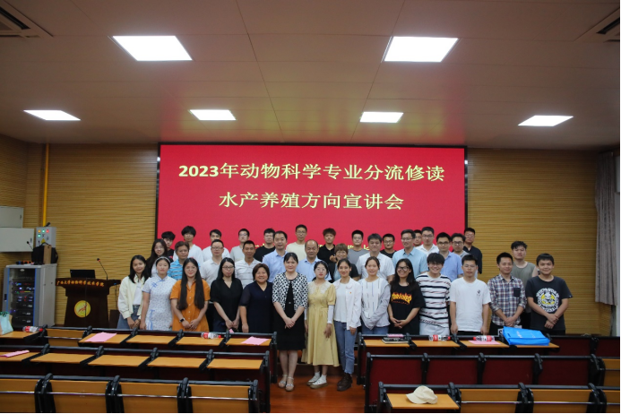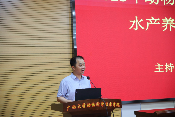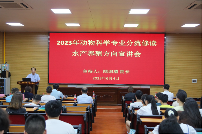 2023年6月4日上午,william威廉中文官网在318报告厅组织召开动物科学专业分流修读水产养殖方向宣讲会,会议特别邀请广西水产科学研究院经理罗永巨、广西芳草安桂生物科技有限公司总经理欧阳贤华、南宁海大生物科技有限公司水产线总经理黄东为同学们讲解水产行业的发展概况、前景和优势等多方面内容。william威廉中文官网党委书记顾慕娴、经理陆阳清、党委副书记沙建、水产学科带头人潘英教授、李文红教授、覃志彪老师、梁静真老师、欧伟豪老师,以及87名22级动物科学专业本科生、水产全体研究生参加活动。
