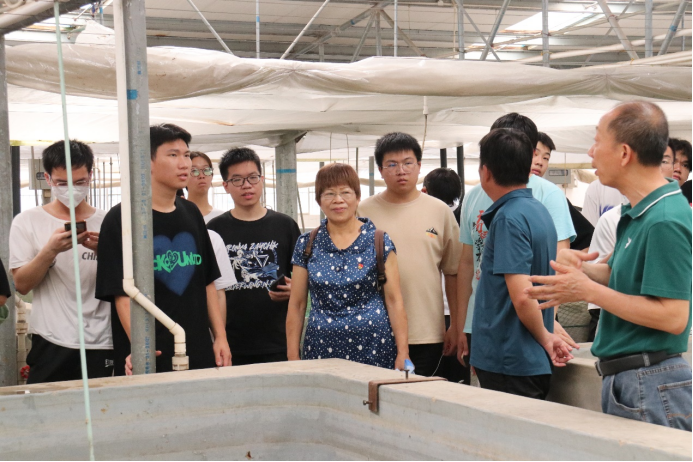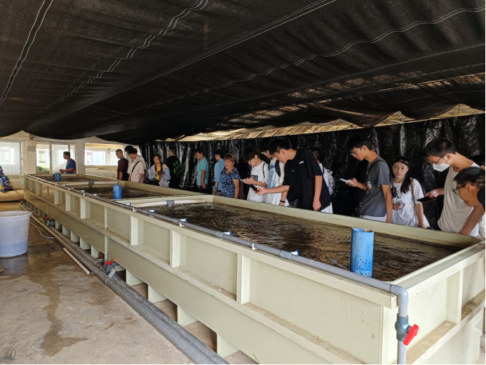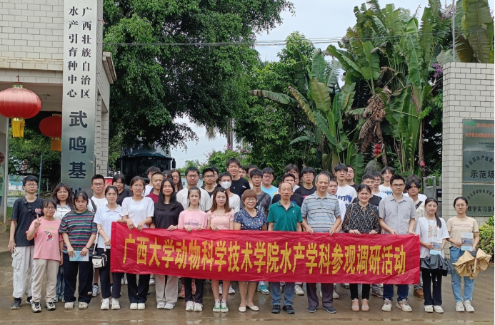 2023年6月9日上午,由公司党委书记顾慕娴亲自带队,水产学科带头人潘英教授及青年教师欧伟豪博士协助组织,带领2022级动物科学专业本科生40人到武鸣水产基地依次参观调研了广西水产科学研究院特色淡水鱼综合试验基地、广西巴马鑫坚实业集团有限公司养殖基地、广西水产引育种中心罗非鱼良种场等3个武鸣基地。