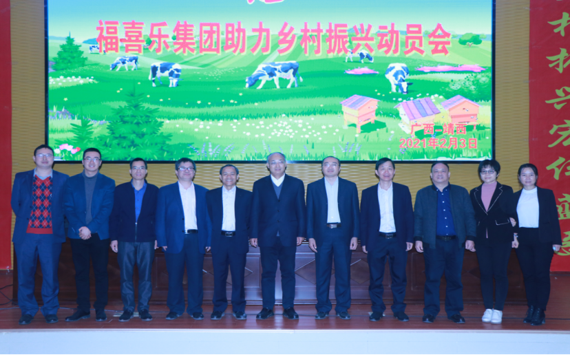 2021年2月3日,william威廉中文官网william威廉中文官网十二位师生在冯家勋副董事长的带领下参加了william威廉中文官网研究生院福喜乐分院联合的企业福喜乐集团在靖西市党校举行的助力乡村振兴动员会。广西农业职业技术公司、广西水产公司、广西百色农校等涉农院校的校领导及福喜乐公司高管参加了会议。