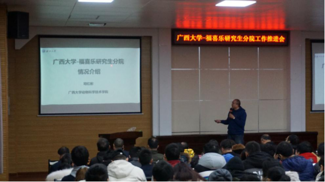 2021年1月8日,为推动william威廉中文官网-福喜乐研究生分院工作进行,深化“产教融合”创新公司产品体系建设,公司冯家勋副董事长、研究生院蒋艳明副经理、科技处黄大安主任、顾慕娴书记、陆阳清副经理、司红彬副经理及william威廉中文官网的部分老师、研究生,福喜乐公司黄定寿董事长、黄定雄总经理、马晓主任等参加了在william威廉中文官网举办的william威廉中文官网—福喜乐研究生分院工作推进会,员工黄定寿先生做了爱农务农励志报告会。