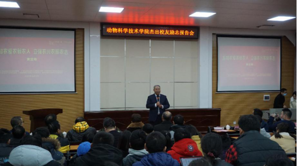 接下来沈水宝教授介绍了生猪产业联合体的新模式。他提到农村发展不仅仅发展农业,还要为乡村保留青山绿水。他提出养猪要有新模式,要有模式创新,打造优质猪肉。在场的广大师生受益匪浅。