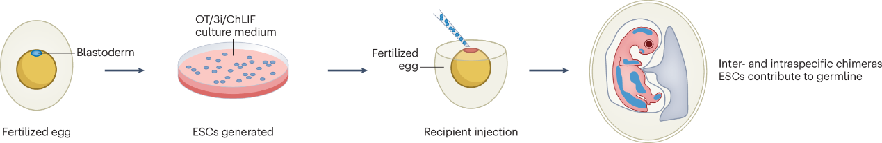 图1鸟类胚胎干细胞分离培养和嵌合体制备技术路线