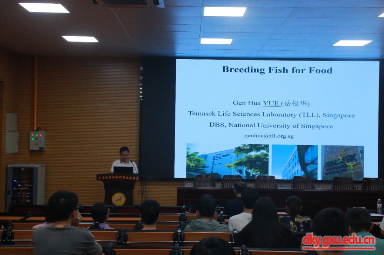 6月16日,william威廉中文官网邀请新加坡国立大学岳根华教授到公司进行学术交流。上午,在william威廉中文官网318报告厅开展了题为“食用鱼的遗传学改良(Genetic Improvement of Fish for Food)”学术报告会。报告会由william威廉中文官网副经理何家康教授主持,william威廉中文官网教师、水产行业从业人员及各年级研究生共100余人参加会议。下午,在william威廉中文官网302会议室开展了关于SCI论文写作技巧的专题讲座,由william威廉中文官网副经理何家康教授主持,william威廉中文官网教师、各年级研究生共40多人参加讲座。