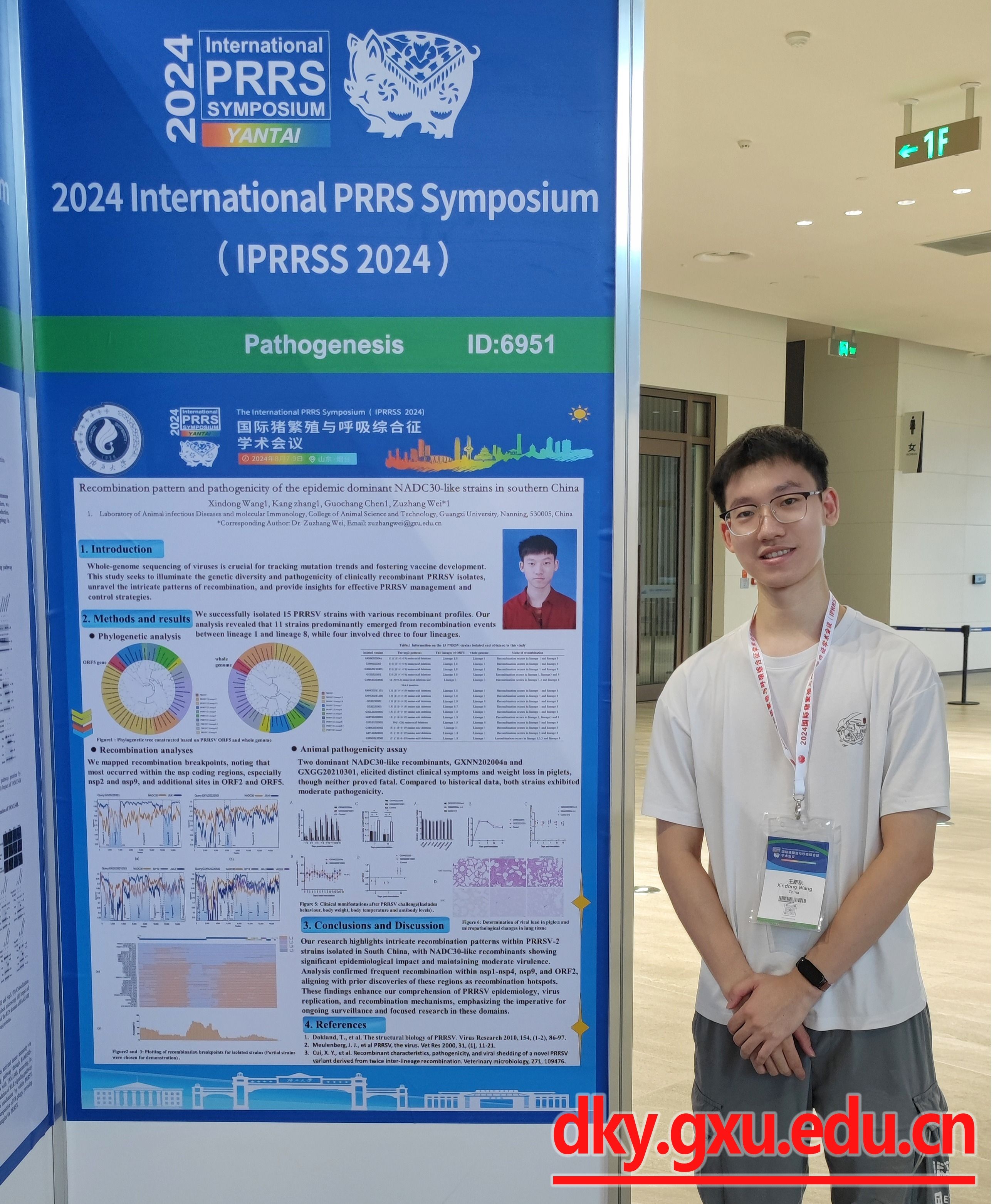 墙报题目:Recombination pattern and pathogenicity of the epidemic dominant NADC30-like strains in southern China。