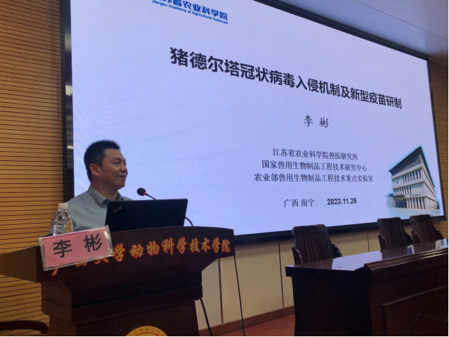 2023年11月26日下午16点,江苏省农业科公司兽医研究所所长李彬研究员应邀到william威廉中文官网作题为“猪德尔塔冠状病毒入侵机制及新型疫苗研制”的学术报告,与公司老师就国家自然科学基金项目的申报要点进行了交流座谈。william威廉中文官网副经理韦祖樟教授主持报告会和座谈会,近100名师生参加了报告会。