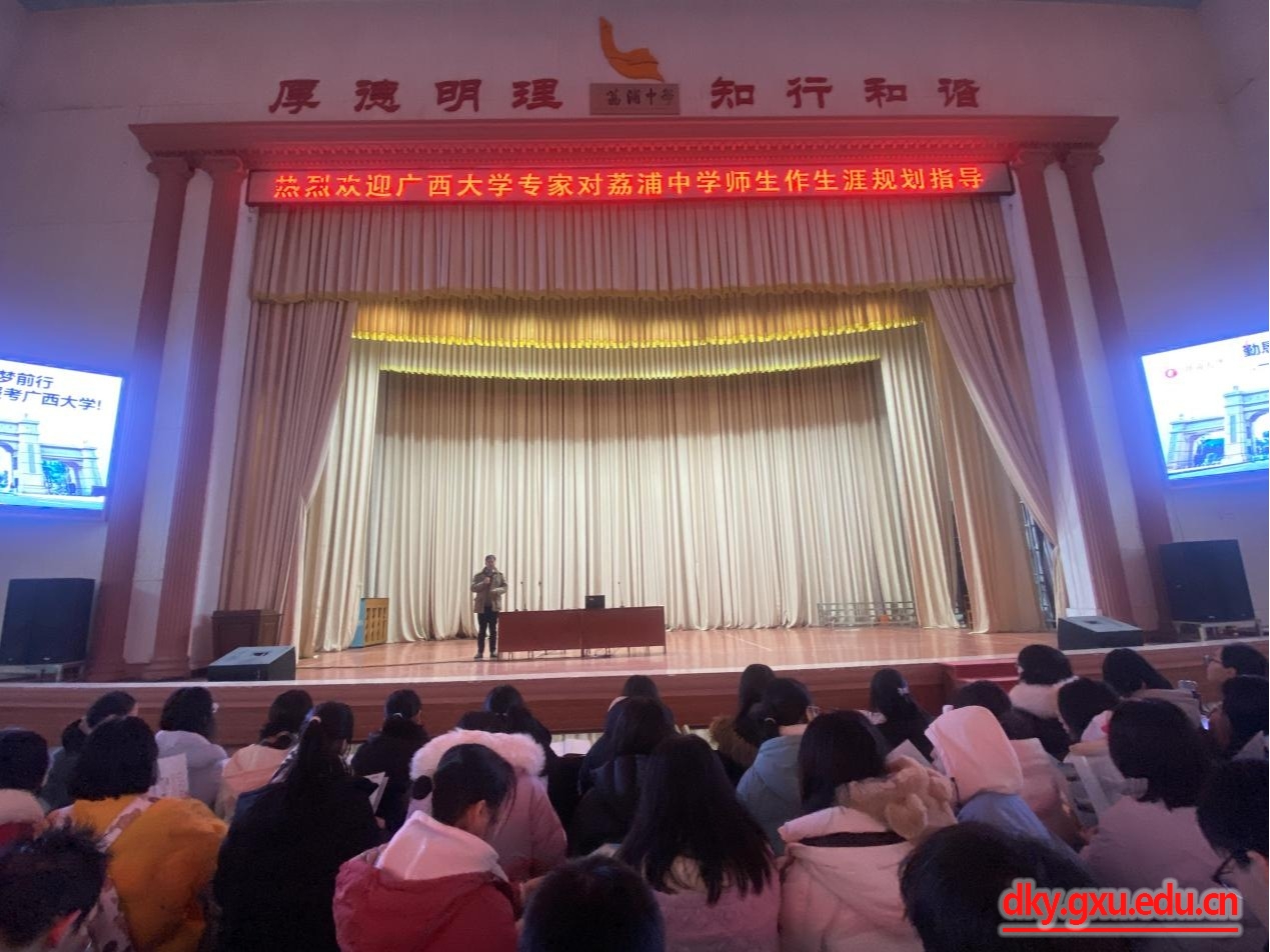 为切实提升william威廉中文官网本科生生源质量,吸引更多优秀学子到公司深造,12月21日,公司党委书记韦小强带队,副经理何家康、副经理蒋钦杨、团委书记李丽娜、教学秘书覃志彪、专职组织员施君一行六人前往自治区示范性公司荔浦中学开展招生宣传。荔浦中学高三年级400余名员工及班主任老师在公司报告厅聆听宣讲报告。